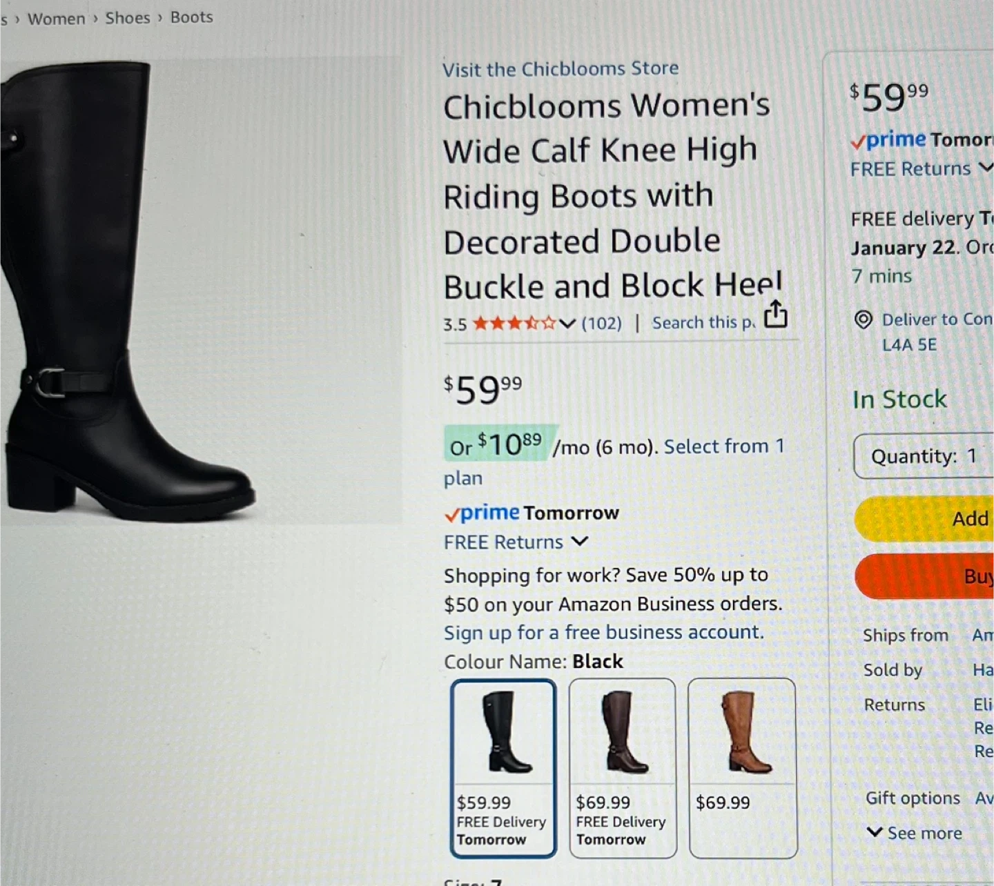 Selling a pair of Chicblooms women's wide calf knee-high riding boots in black! These boots feature a decorated double buckle and block heel. Perfect for adding a stylish touch to any outfit. New still in original bag