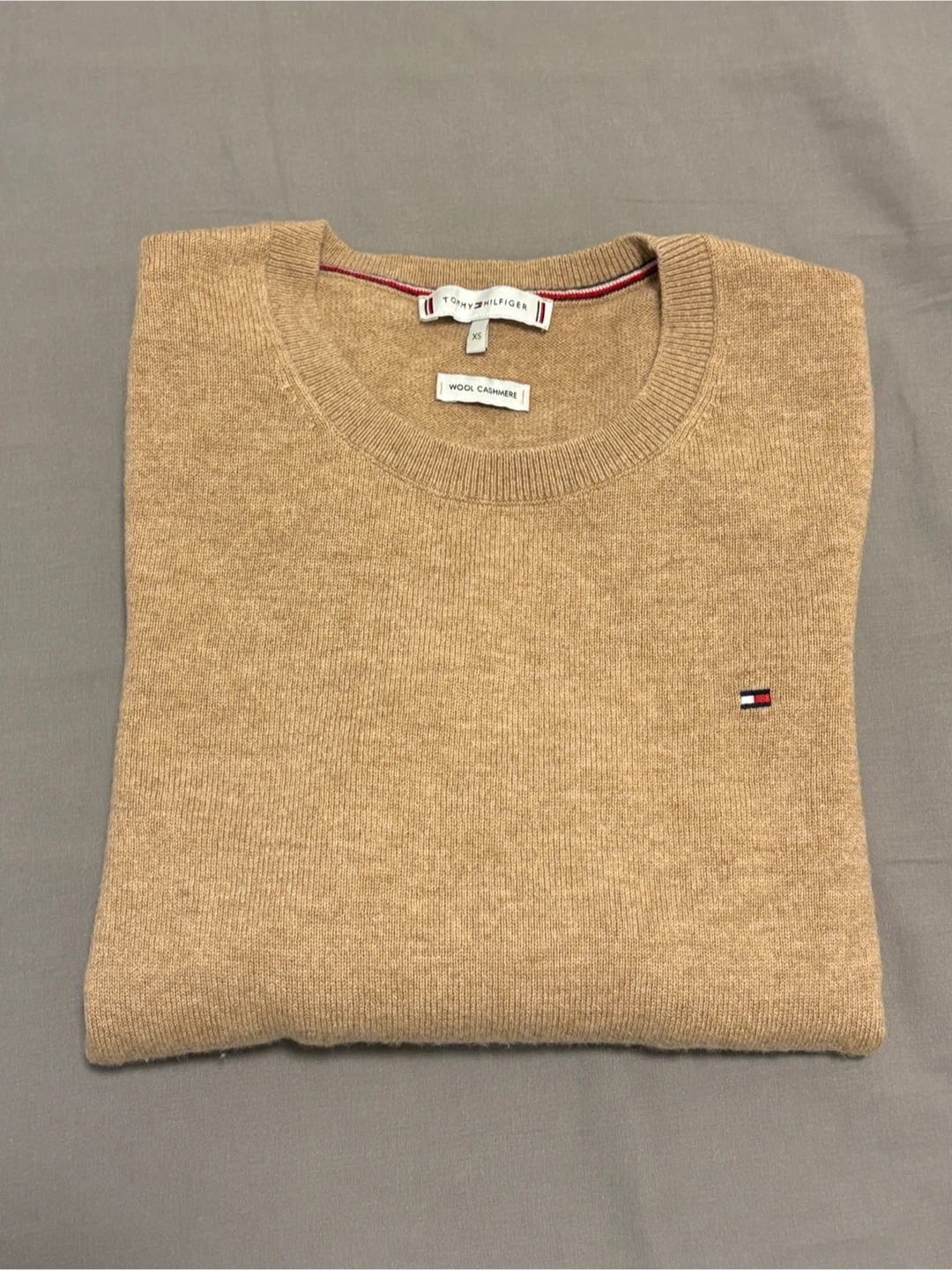 Cozy up in this Tommy Hilfiger sweater! It's an XS and made with a blend of wool and cashmere, perfect for staying warm and stylish. The neutral colour makes it easy to pair with anything in your wardrobe.