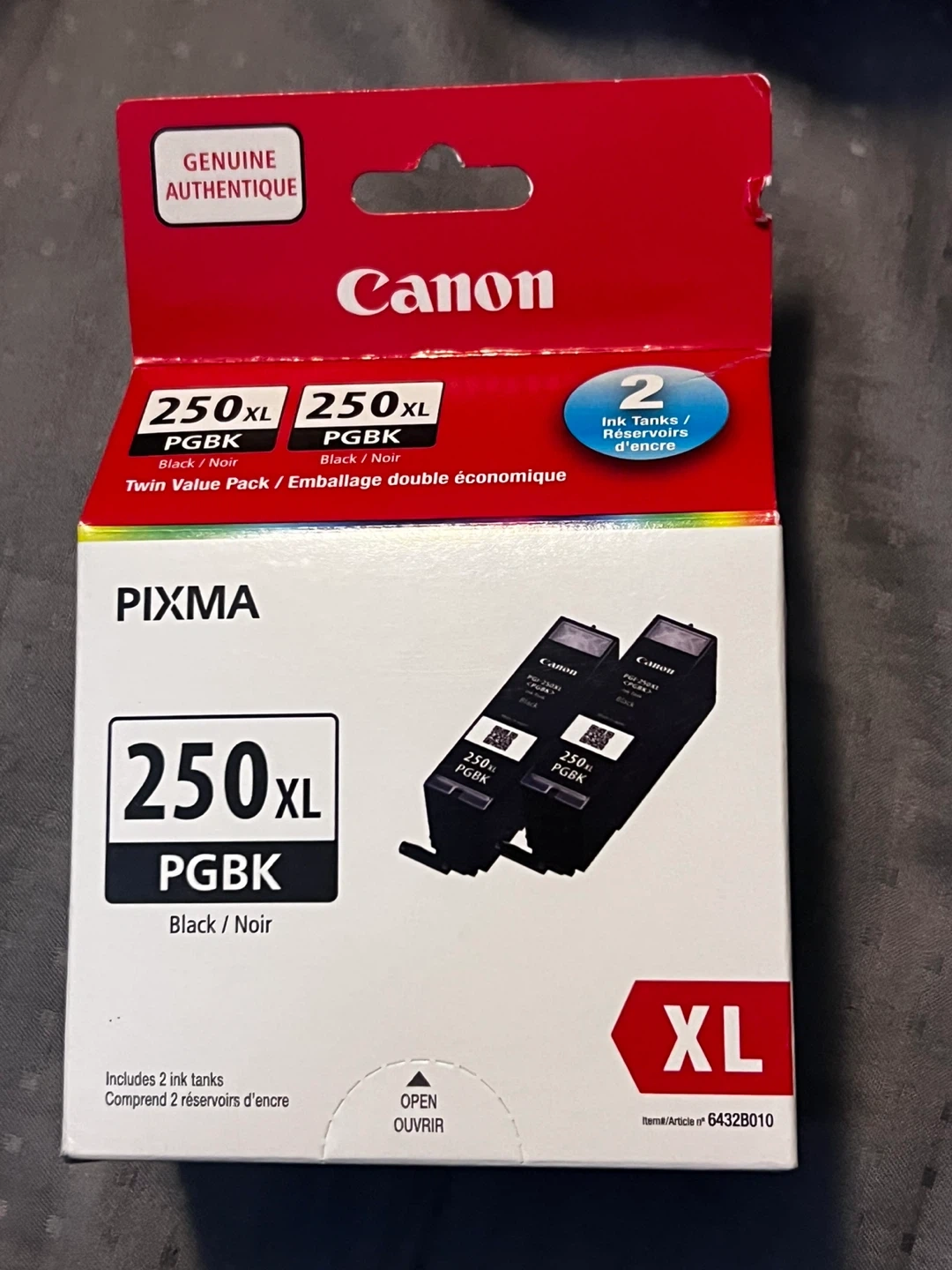 Selling a brand new, unopened Canon PGI-250 XL black ink cartridge twin pack! This is the XL size, so it will last longer. It includes two ink tanks and is compatible with MG6320, MG5420, MX922, and MX722 printers. Perfect for all your printing needs! 2 available $35 each