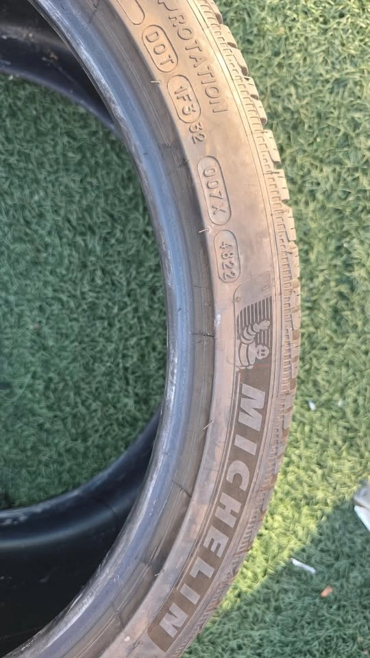 Two Rear tires: 295/30/21 Michelin Pilot Alpin 5, 85% tread, DOT 4822.