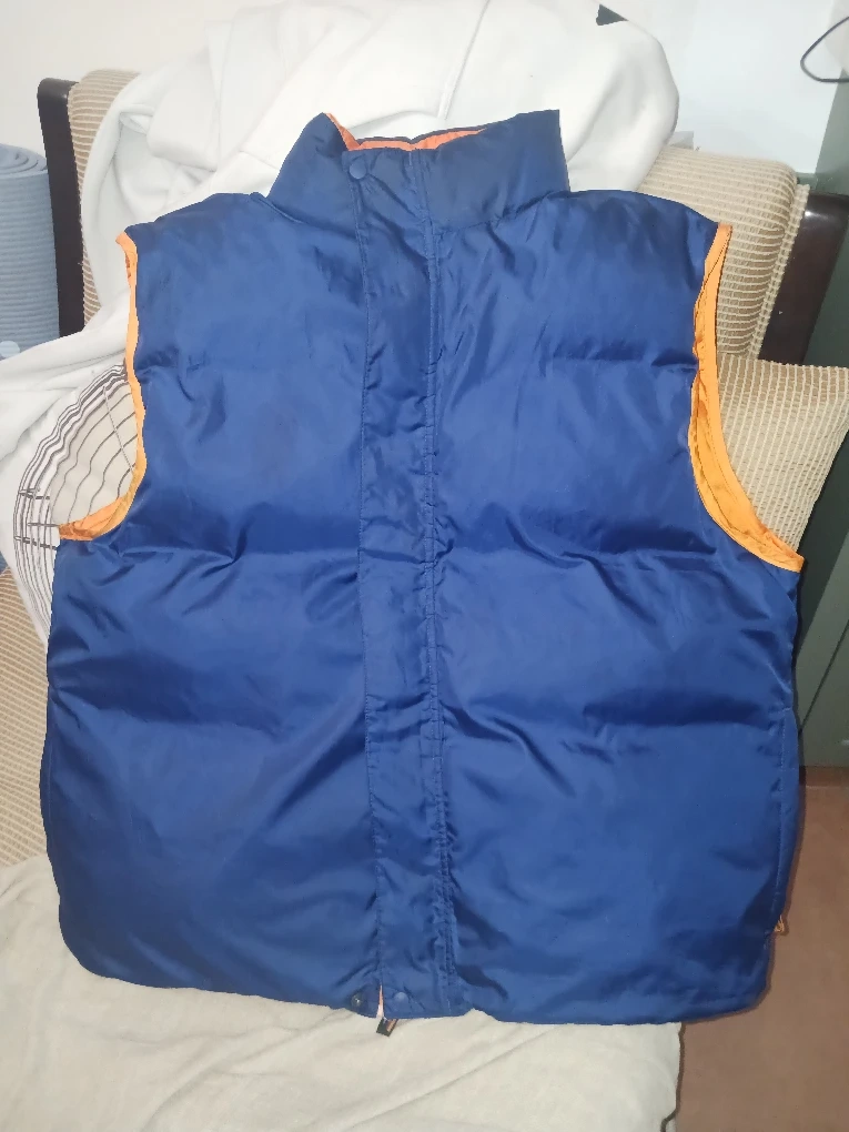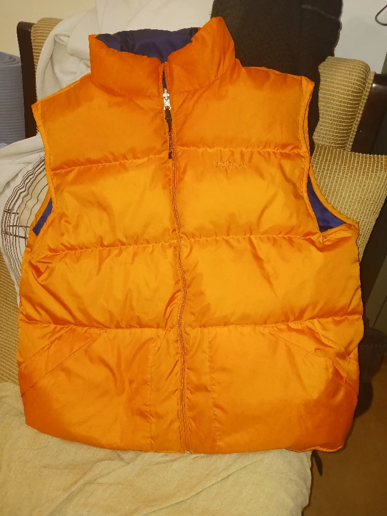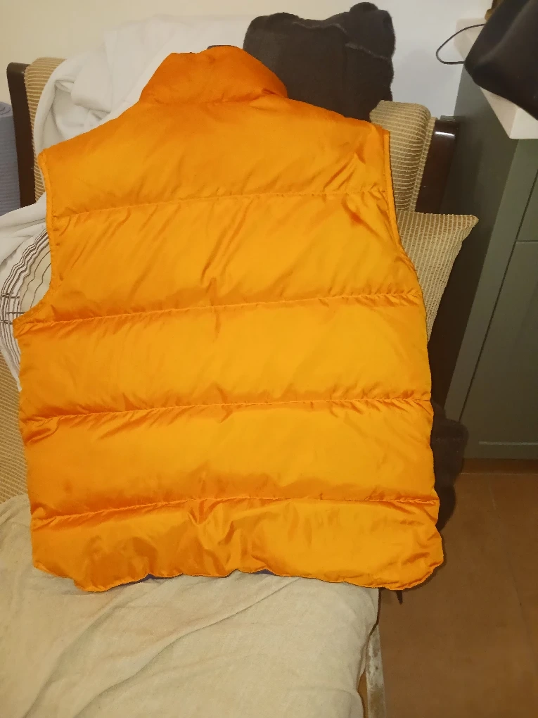 Reversible puffer vest in mint condition, great for layering! One side is orange, the other is blue. Thick, warm and perfect for adding a pop of colour to your outfit! Purchased by mistake thinking it was a Women's L/XL - but it is a Men's L/XL