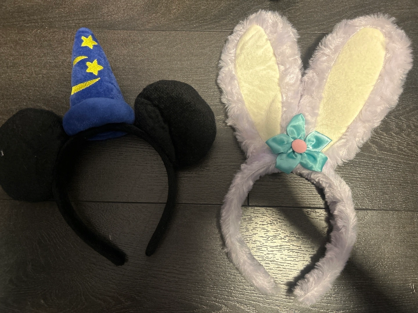 Selling two adorable Disney headbands! One is a Mickey Mouse sorcerer hat headband, and the other is a StellaLou bunny ear headband. Both are in great condition and perfect for a Disney fan or a trip to the parks!