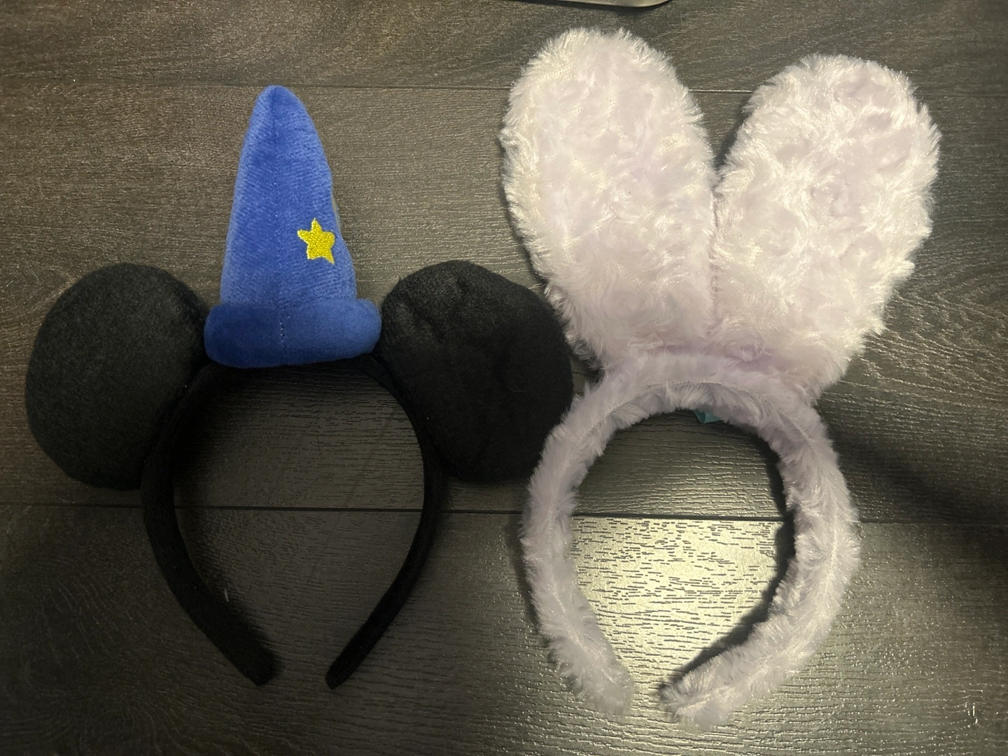 Selling two adorable Disney headbands! One is a Mickey Mouse sorcerer hat headband, and the other is a StellaLou bunny ear headband. Both are in great condition and perfect for a Disney fan or a trip to the parks!