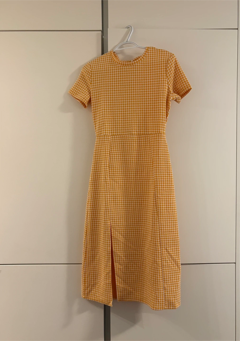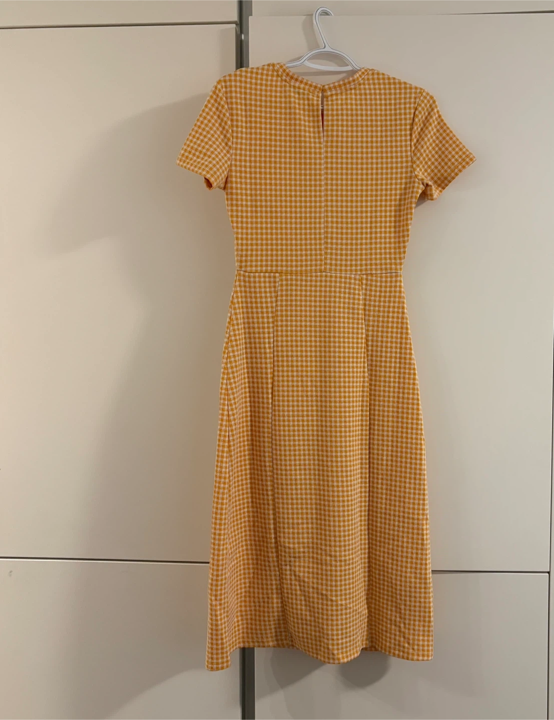 Selling a cute Zara gingham dress in size M! It's in great condition and features a classic yellow and white checkered pattern!