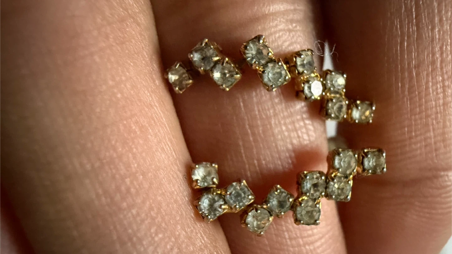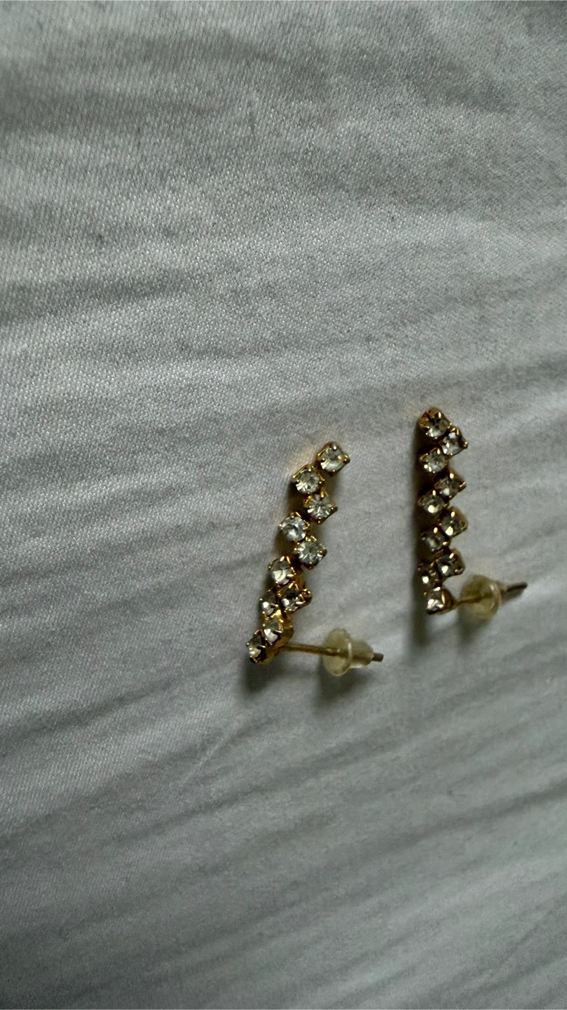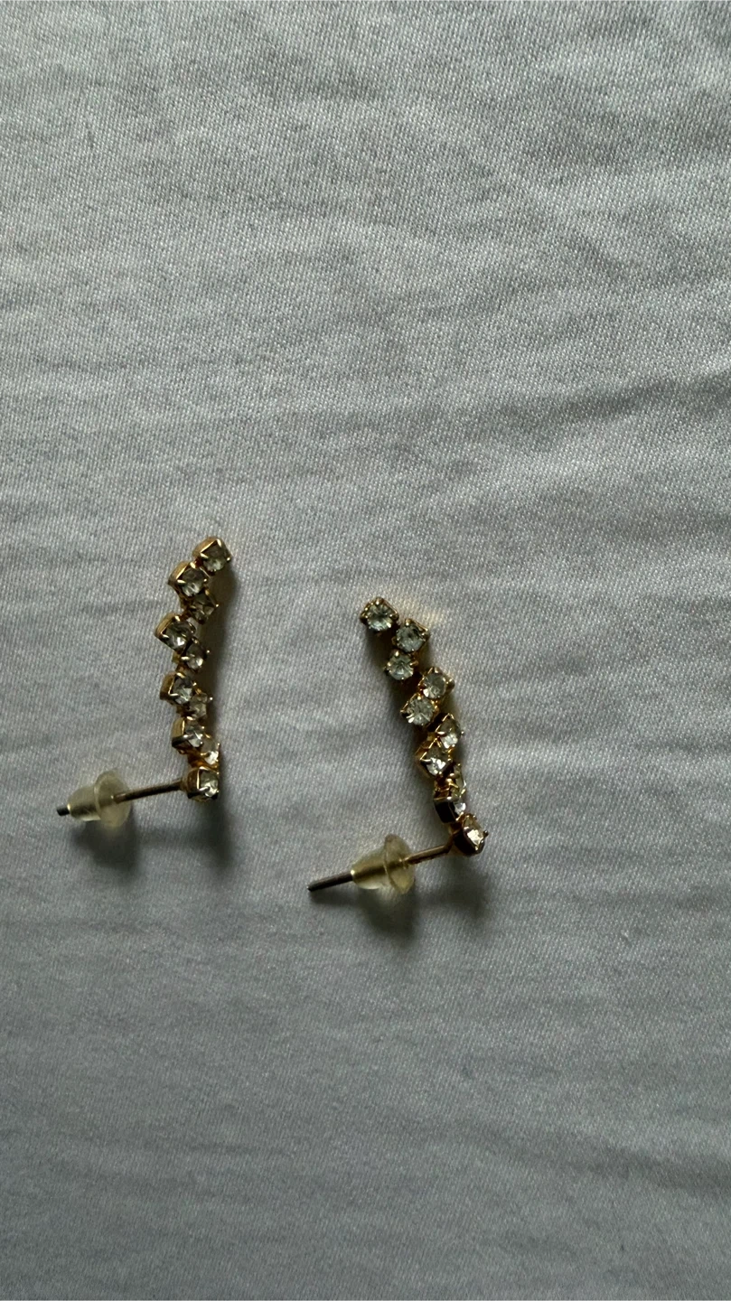 Selling a pair of gold-tone ear climber earrings adorned with rhinestones. They add a touch of sparkle to any outfit! Weighs 1.05 grams