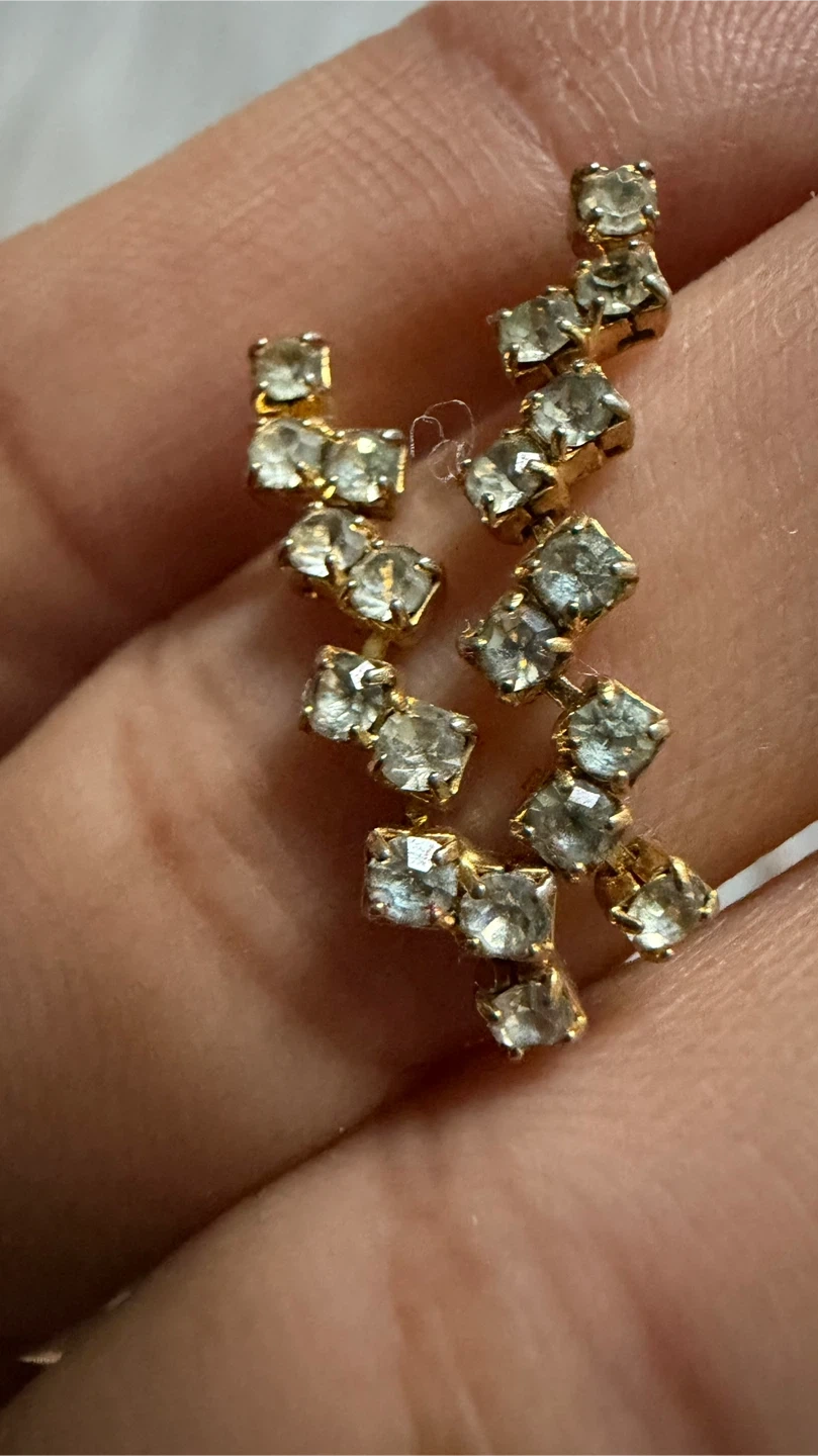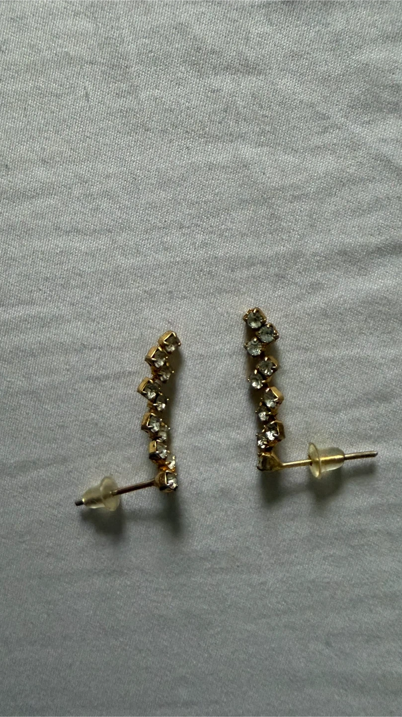 Selling a pair of gold-tone ear climber earrings adorned with rhinestones. They add a touch of sparkle to any outfit! Weighs 1.05 grams
