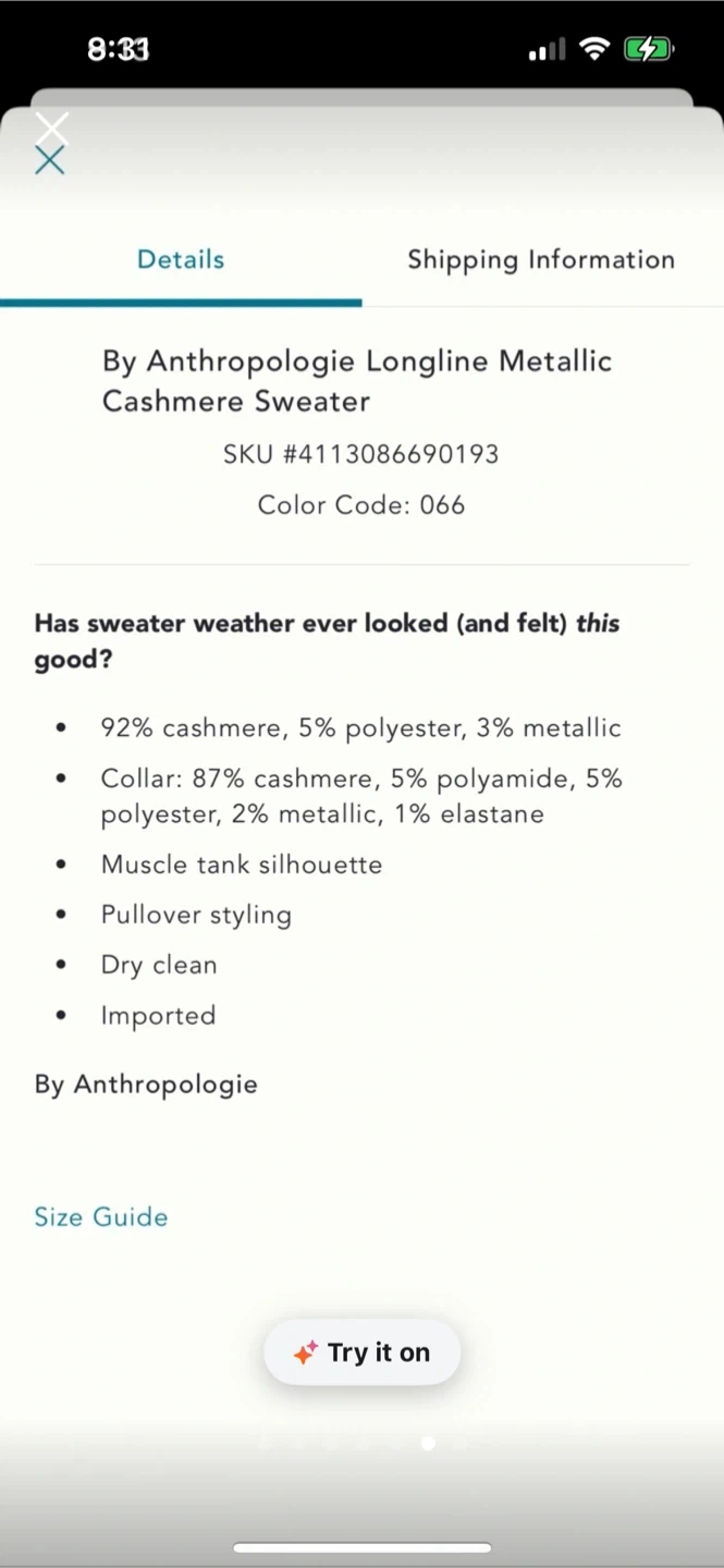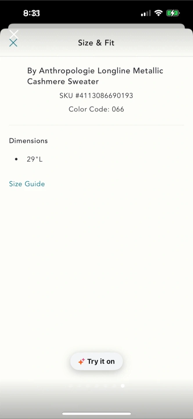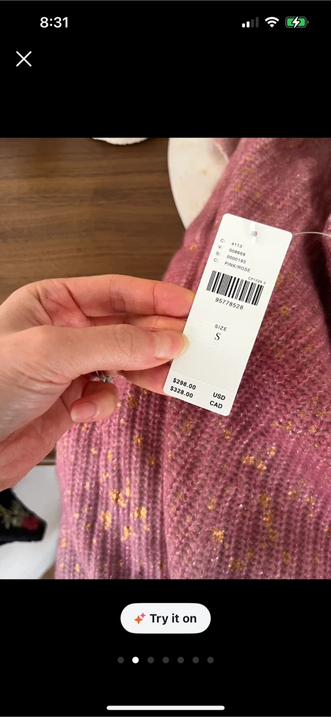 BNWT Anthropologie Longline Metallic Cashmere Sweater S