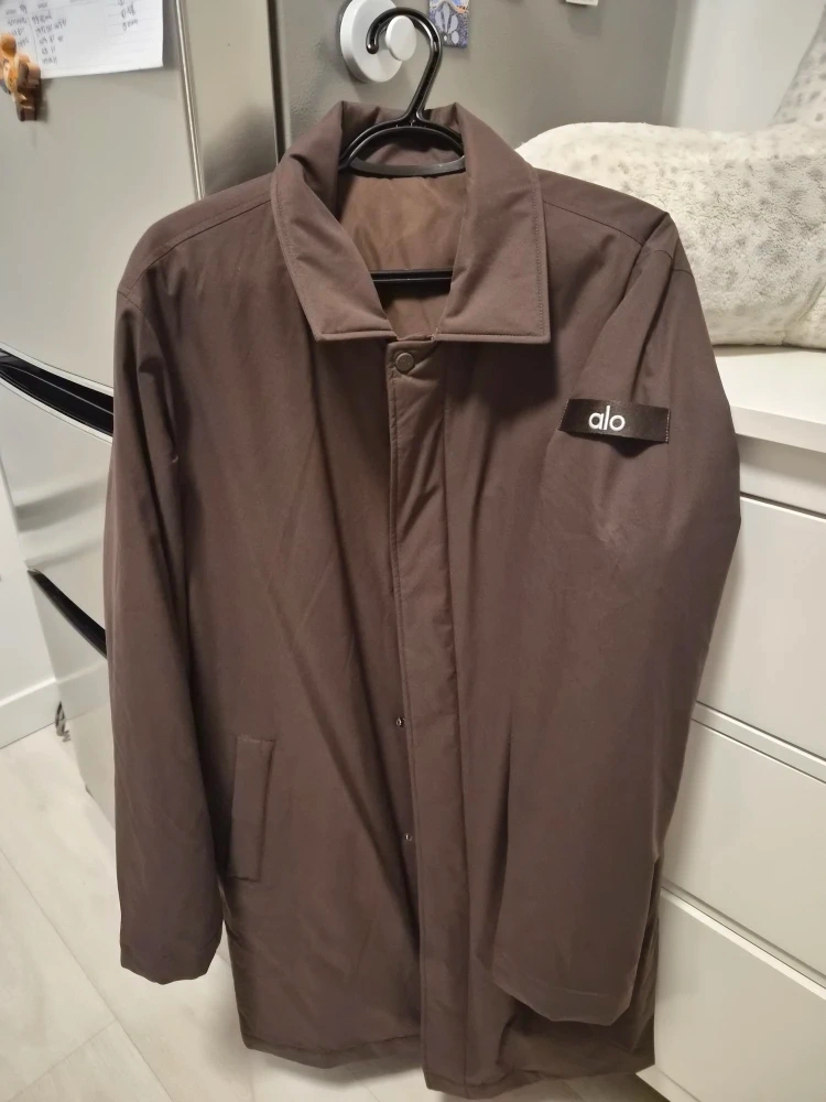 Selling a gently used Alo Yoga jacket in a lovely brown colour! It's in great condition and ready for a new home. Perfect for layering or wearing on its own during warm light long jacket .