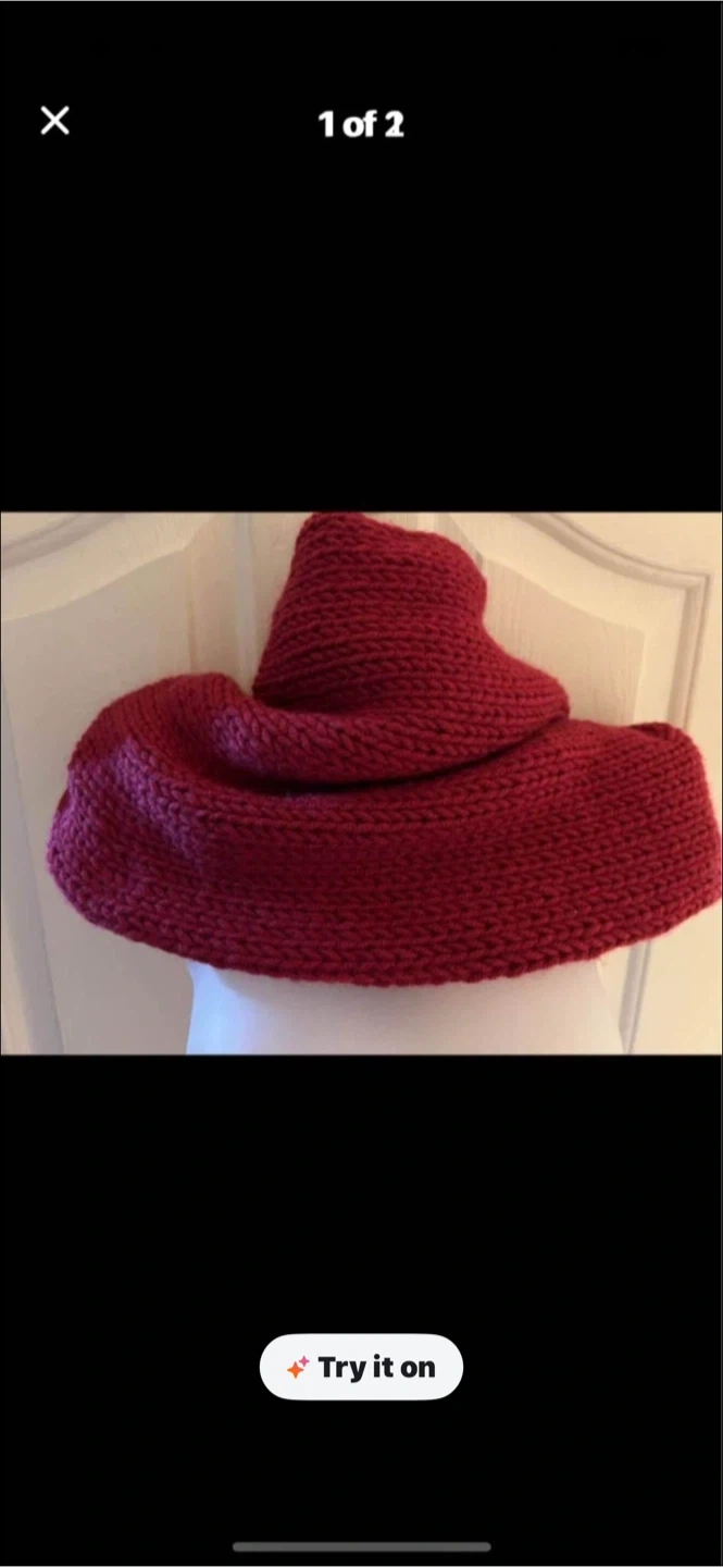 Selling a cozy, knitted cowl in a beautiful burgundy colour. It's perfect for keeping warm during the colder months. It's in great condition and ready for a new home!