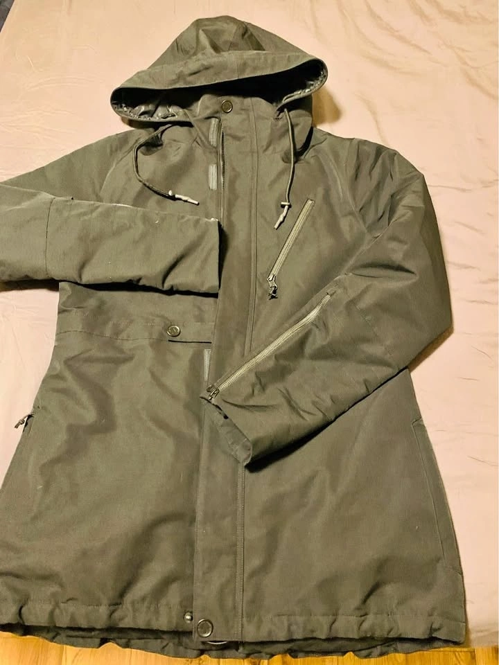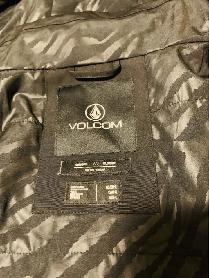 This is a Volcom snow ski jacket with 10,000 mm waterproofing and 10,000 gm² breathability. Worn only once. Size L, color black. Pickup at Save on Food at Terra Nova in Richmond. Cash only.