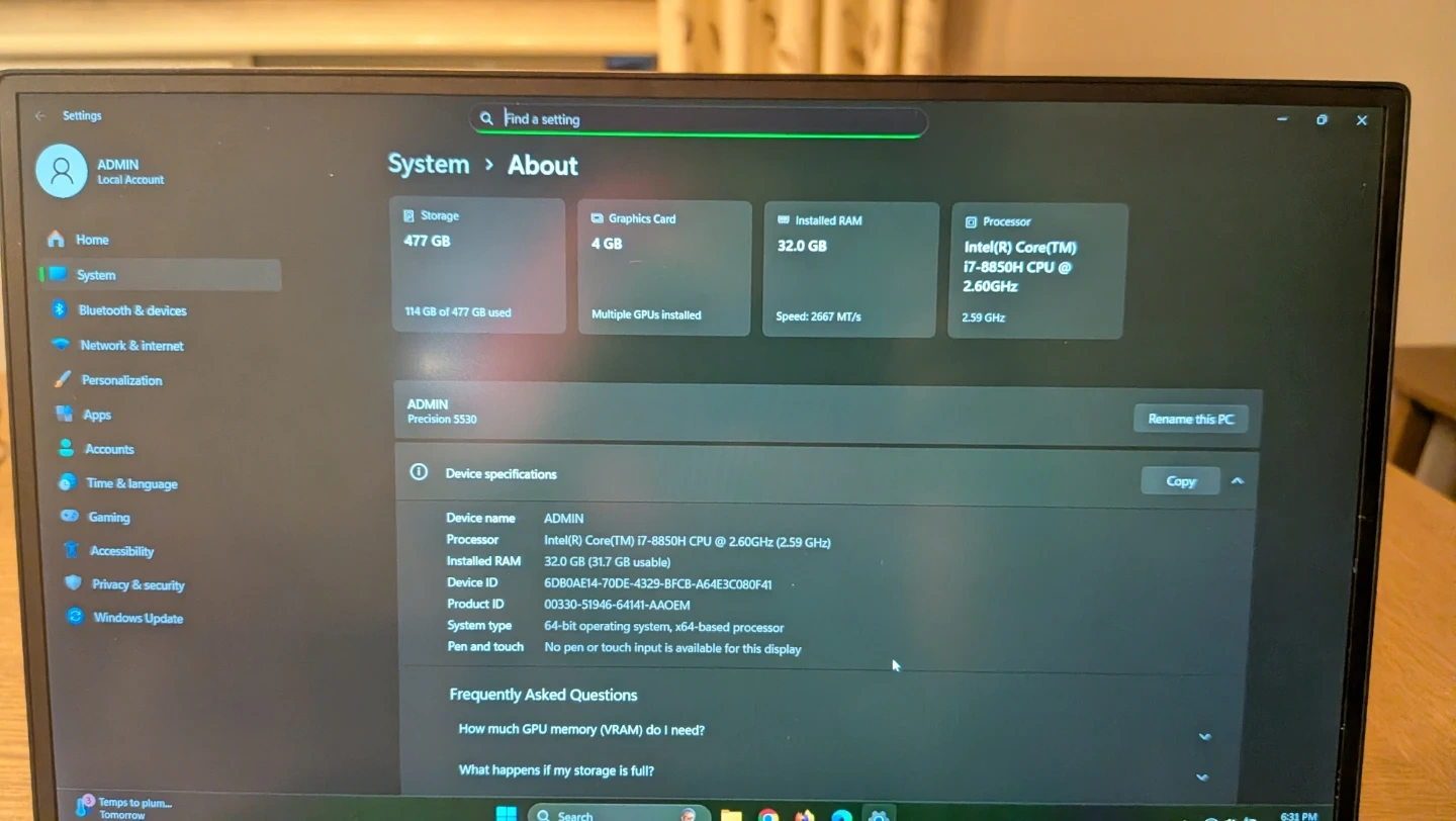 Selling a Dell Precision 5530 laptop in great condition! It has a 15.6" FHD 1920 x 1080 display and runs Windows 11 Pro.