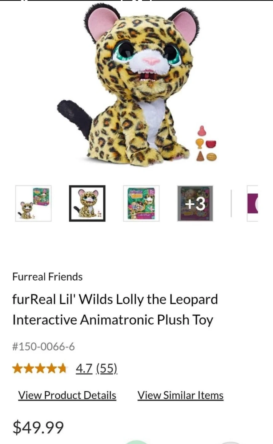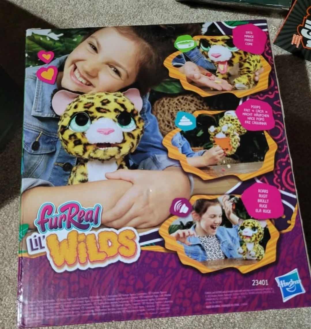 Selling a FurReal Lil' Wilds Lolly the Leopard Interactive Animatronic Plush Toy! This adorable plush toy is ready for a new home. It comes with its treats and makes over 35 sounds and reactions. Ages 4+