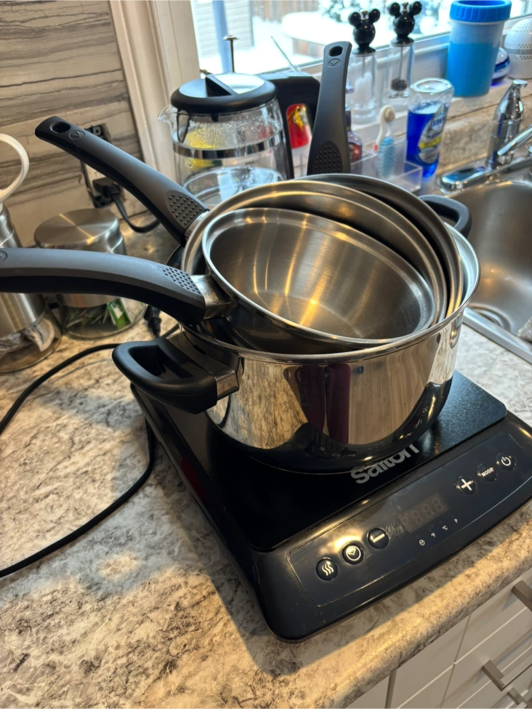 Selling a Vida by Paderno stainless steel cookware set. It's in great condition and ready for a new home. Also included is a Salton induction cooktop, perfect for efficient and precise cooking. This set is perfect for a college student in residence or rental.