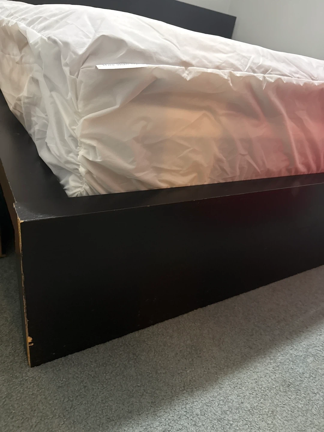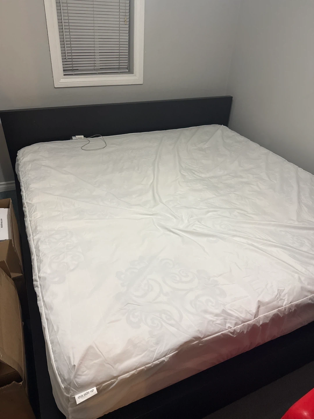 Selling a King size bed frame in black along with the mattress. It's in good condition and ready for a new home. Mattress Protector not included. Solid and sturdy!