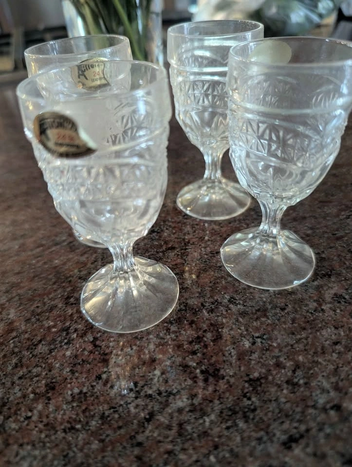 Set of 4 vintage Zajecar D’Adriana Luna hand cut crystal cordial glasses. These feature a diamond-cut pattern and were manufactured in 1988 in Yugoslavia. Perfect for serving cordials or shots. Cash only. Pick up at McDonalds on 65th St and Western Ave.