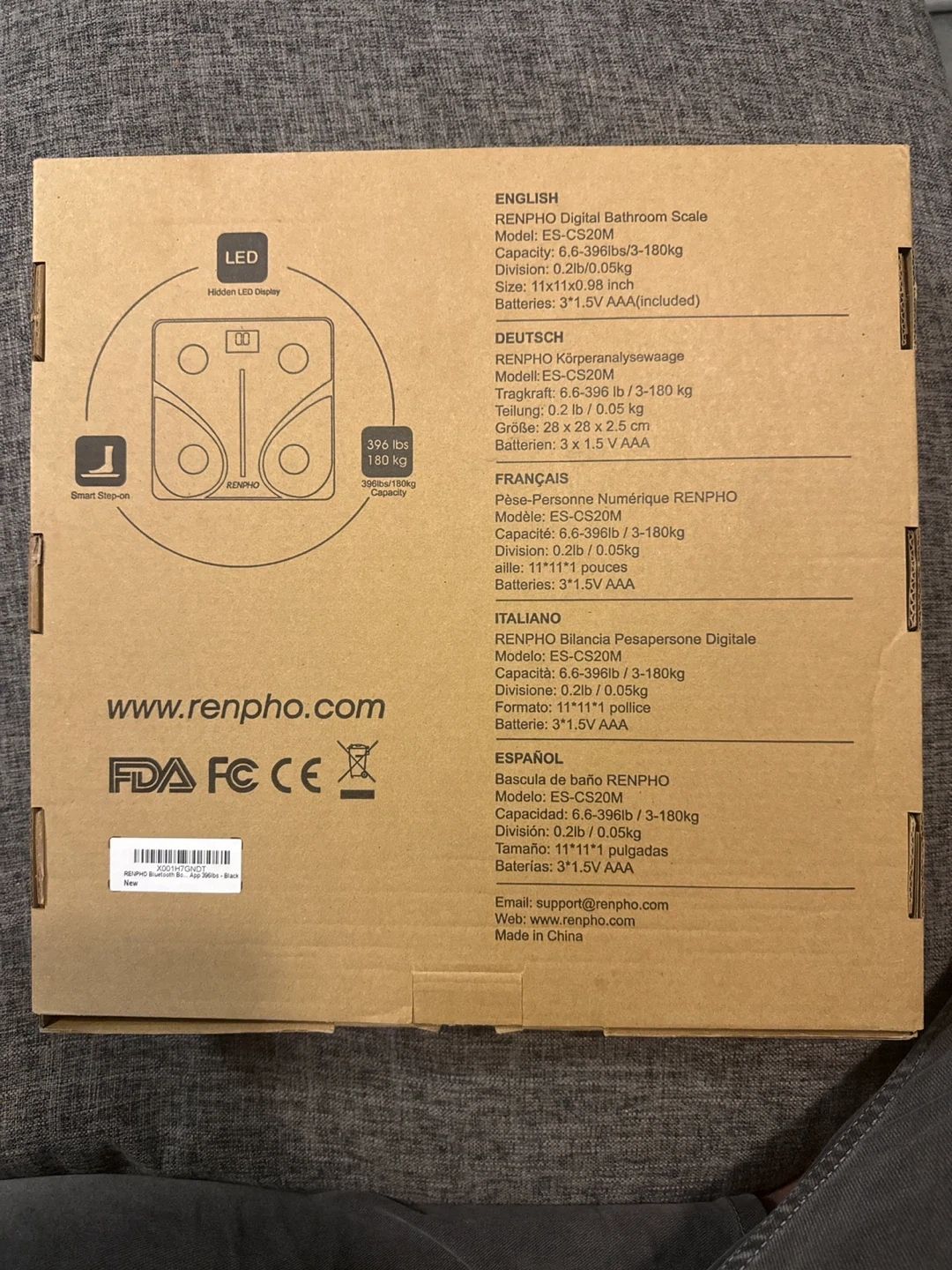 Selling a RENPHO Smart digital bathroom scale, model ES-CS20M. It can measure from 6.6-396lb/3-180kg. The size is 11*11*1 inches. Batteries are included. Comes with the original box!