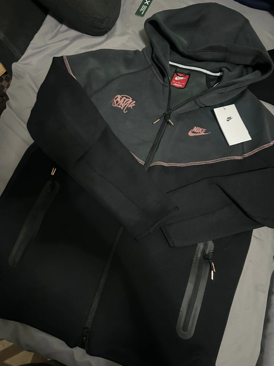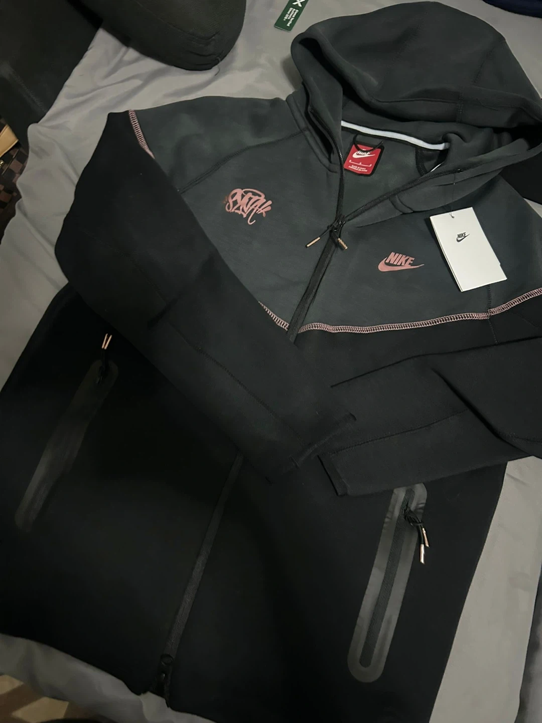 Selling a Nike Tech Fleece hoodie in black. It features a stylish design with a hood and zip-up front. Perfect for staying comfortable and looking good!