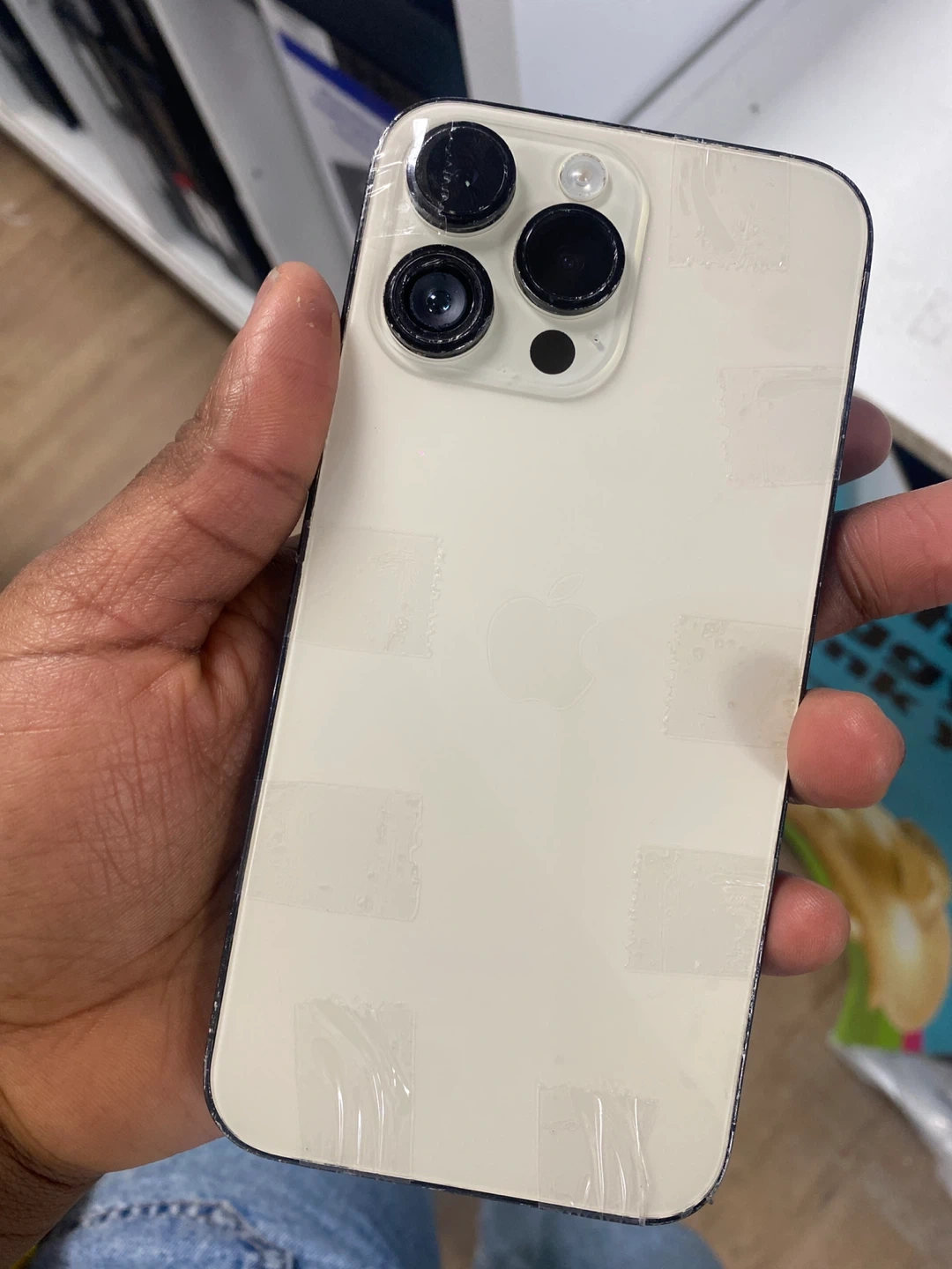 Selling an iPhone 14 Pro Max ,128 gig, brand new front and back screen. Battery 69%, comes with two cases and I phone box. One camera lens bad. OBO