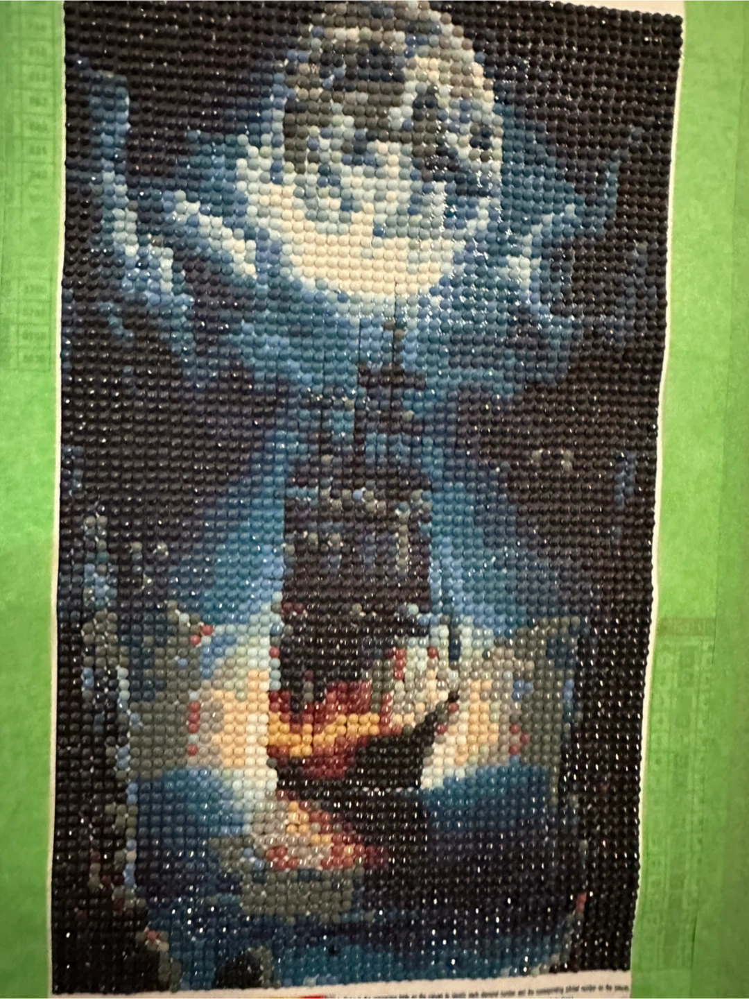 Selling a diamond art painting. The painting depicts a ship at night with a moon in the background. It's a beautiful piece!
