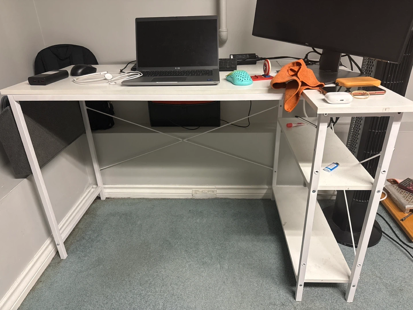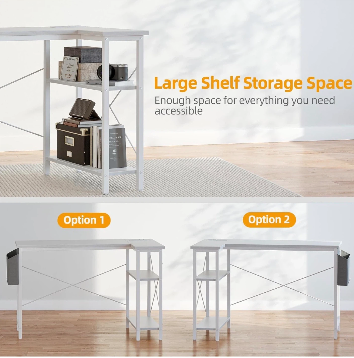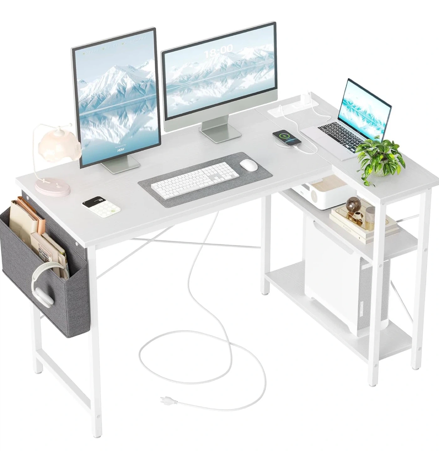 Computer Desk with Power Outlets, 47 Inch L Shaped Desk with Reversible Shelves, Gaming Desk Corner Desk Study Work Desk for Home Office Bedroom Small Space, White. The desk is in good condition and ready for a new home!