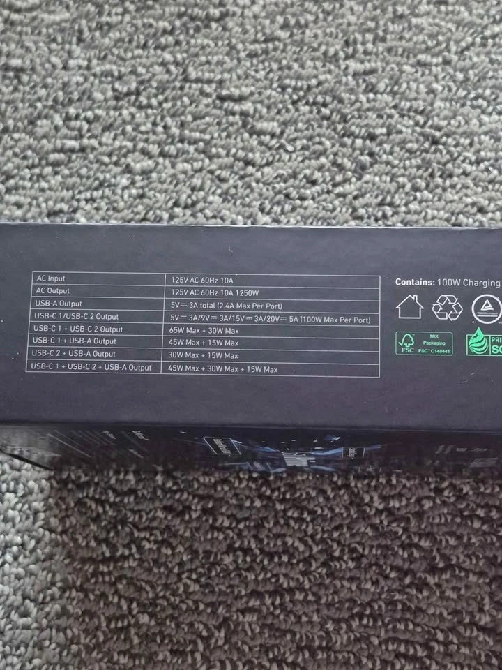 Brand new Anker GaNPrime 100W charging station with 2 USB-C, 2 USB-A, and 2 AC outlets. Features PowerIQ 3.0 technology for fast charging. Compatible with Apple and Samsung devices. Let me know if you're interested!
