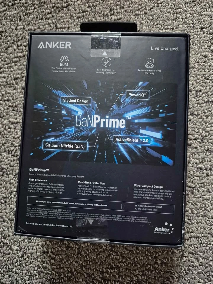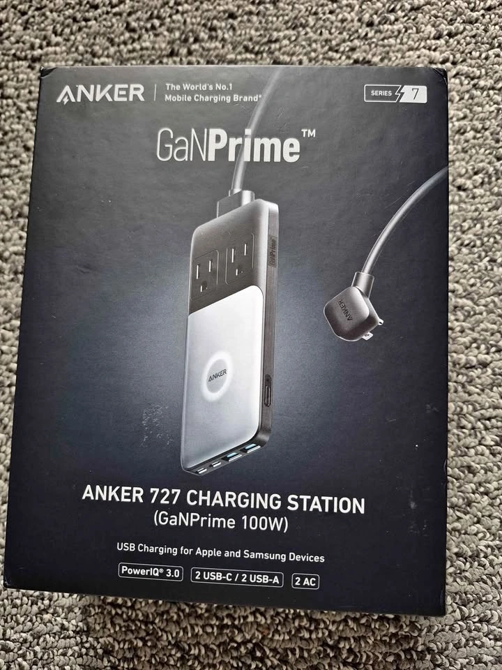 Brand new Anker GaNPrime 100W charging station with 2 USB-C, 2 USB-A, and 2 AC outlets. Features PowerIQ 3.0 technology for fast charging. Compatible with Apple and Samsung devices. Let me know if you're interested!