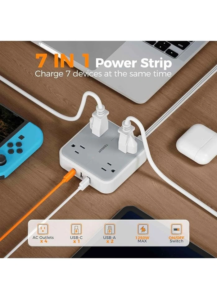 Tessan flat Plug extension cord with usb