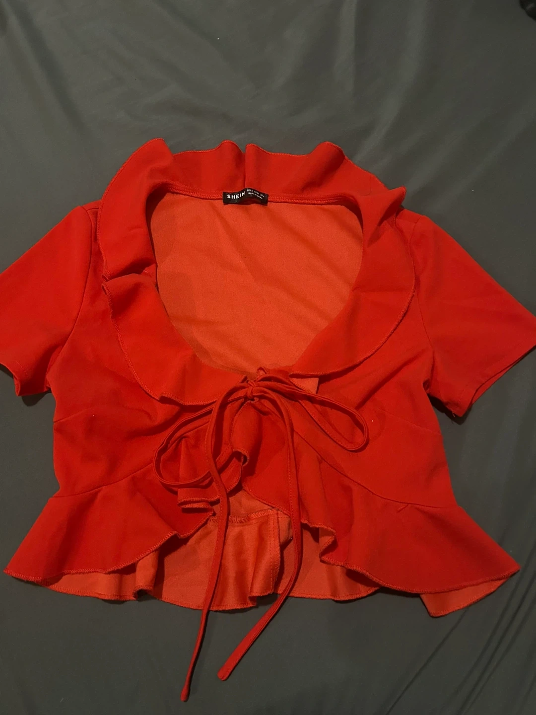 Buy & SellSHEIN Red Ruffle Tie Front Crop Top - Size SSHEIN Red Ruffle Tie Front Crop Top - Size S$2Cute red crop top from SHEIN! Features a ruffle detail and a tie front. Perfect for summerConditionLike newSizeSBrandSHEINWHERE TO MEETDavenport Rd & Lightbourn AveView MapSELLERverifiedNateWallance Emerson89472 reviews1 chats·1 favorites·97 viewsSEND CHAT TO SELLERHi Nate! I’m interested in your listing.Hi Nate! I’m interested in your listing.Get the Karrot app to chatSign In to chat