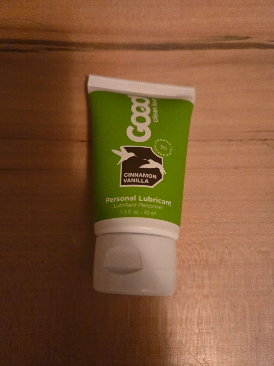 Selling a tube of Good Clean Love personal lubricant in the Cinnamon Vanilla scent! It's a personal lubricant with 95% organic ingredients and comes in a 1.5 fl oz / 45 ml tube
