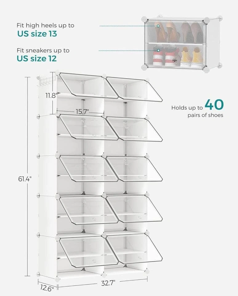 • Holds up to 40 pairs of shoes