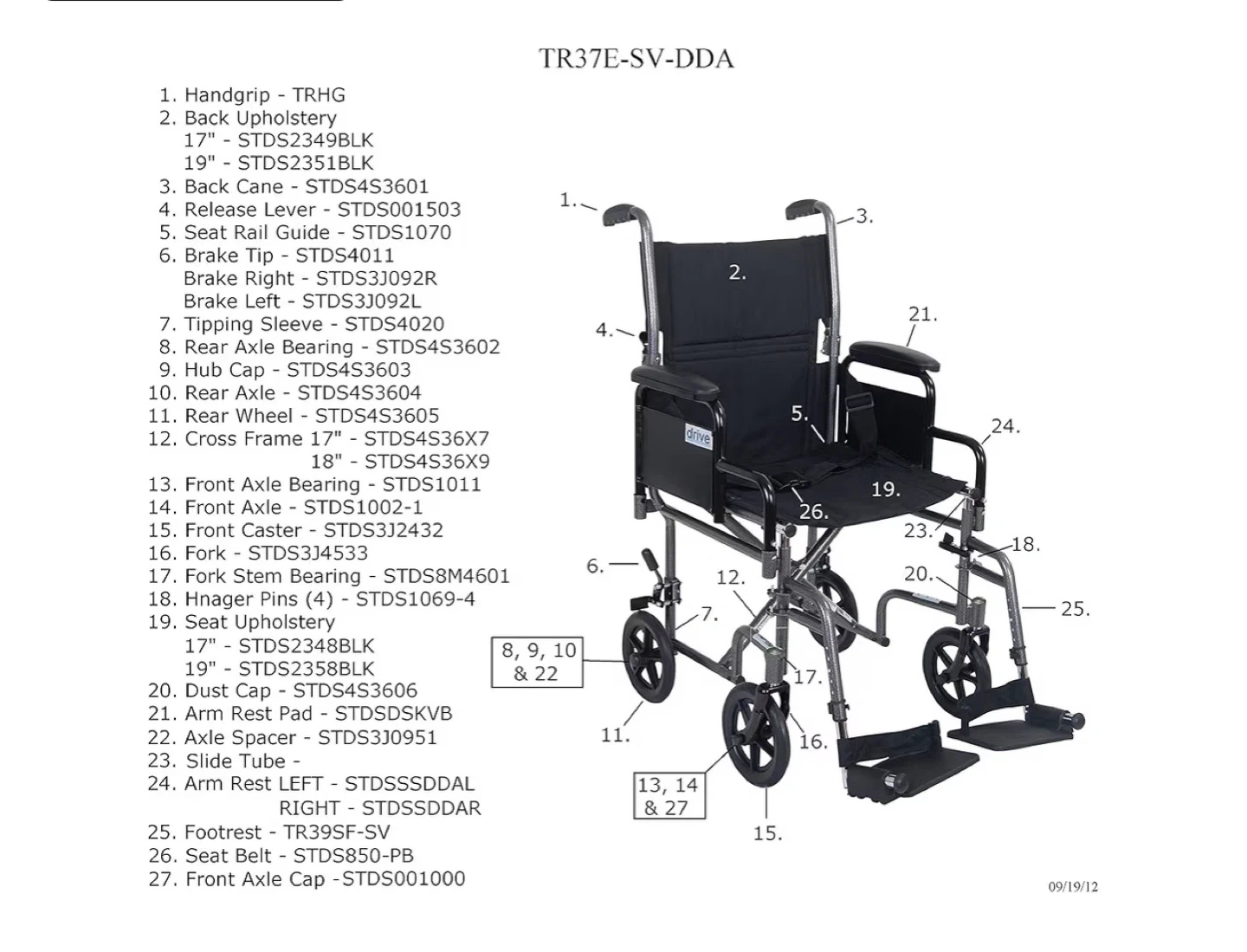 Factory Sealed Drive Medical Transport Wheelchair – 19” Seat