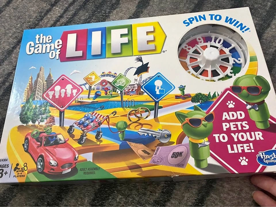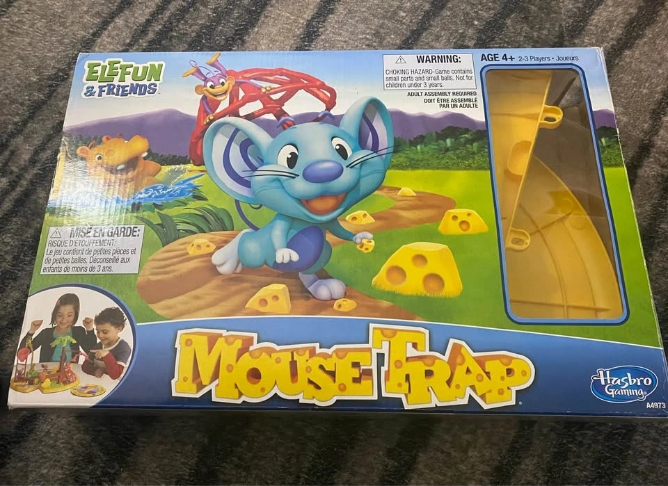 4 fun board games for the family! Game of Life, Clue Junior, Mousetrap, Blindfolded Musical Chairs (Ellen Degeneres).