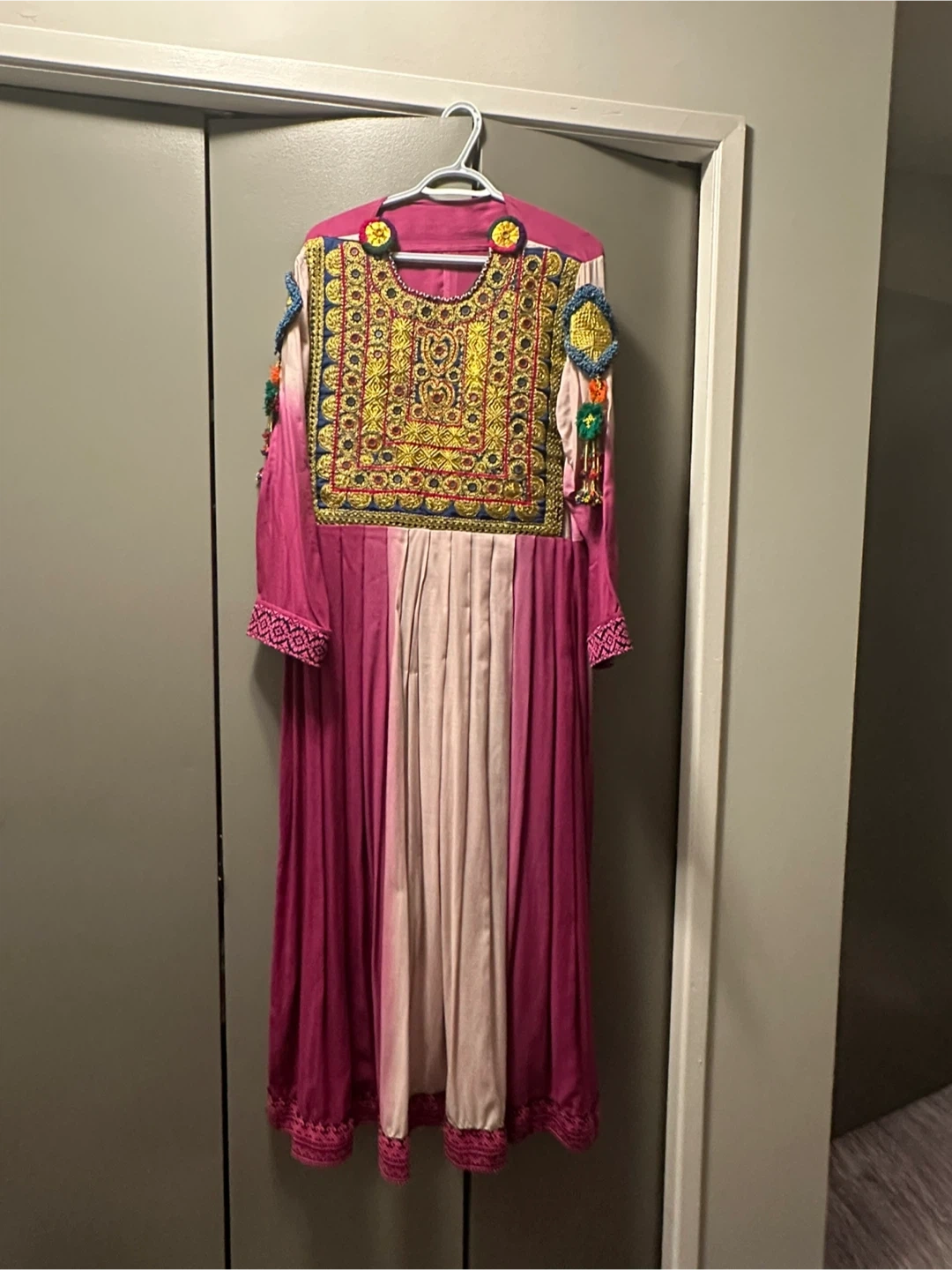 Beautiful, traditionally embroidered Afghan dress. The dress features intricate detailing and vibrant colours. Perfect for cultural events or special occasions!