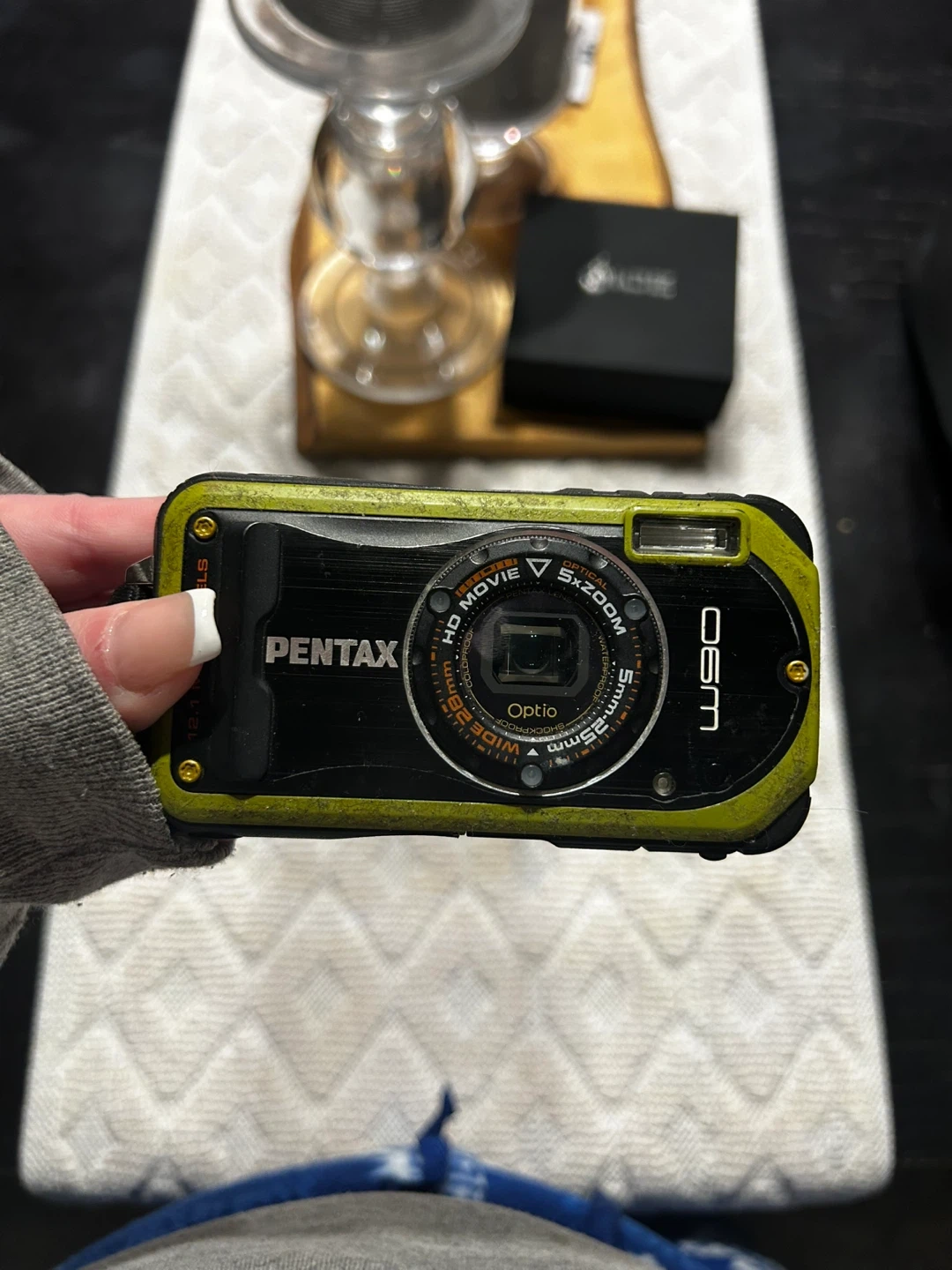 Selling a used Pentax Optio W90 digital camera. It's waterproof and ready for adventure! Features include HD movie recording and a 5x zoom. Perfect for capturing memories on the go