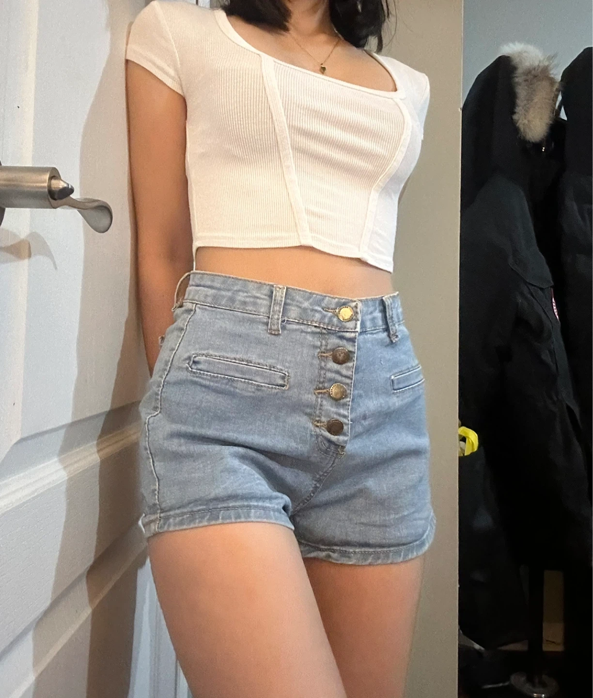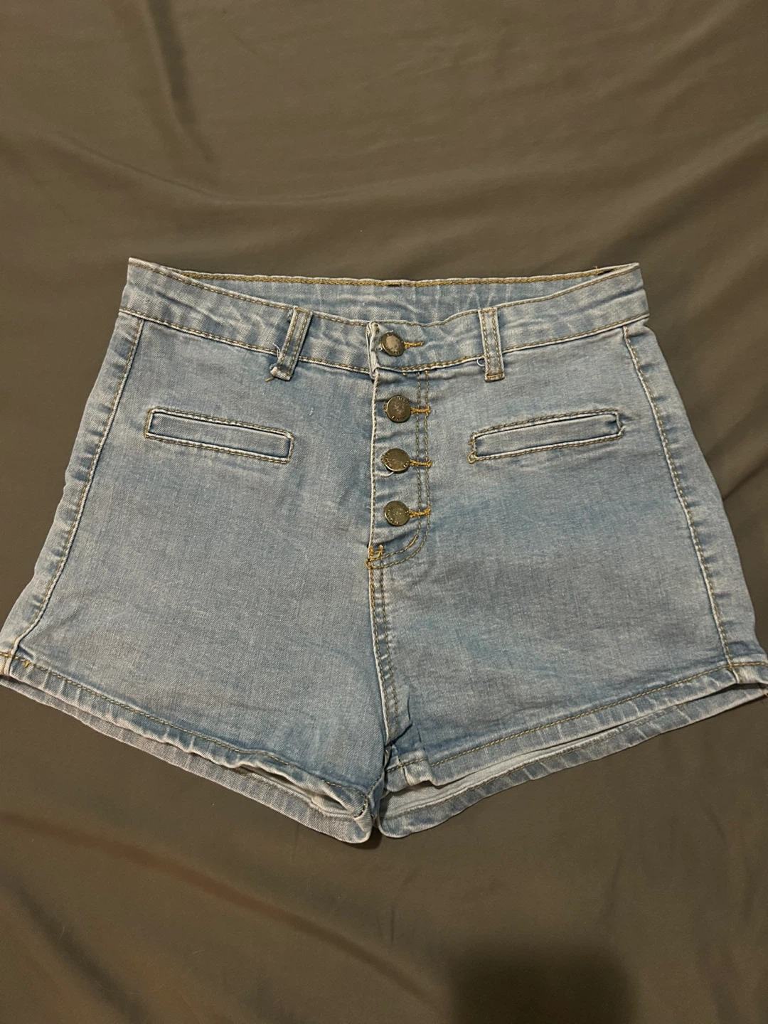 Cute denim shorts with a button-front design! These are a size small and in great condition. Perfect for summer and casual wear. The light wash denim is super versatile and easy to style. Get ready for warmer weather!