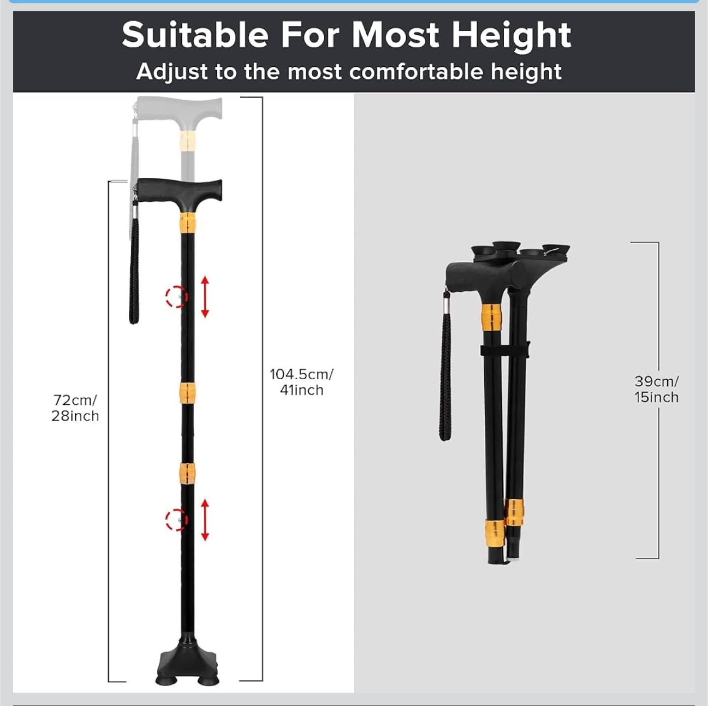 LIXIANG Walking Cane - Foldable & Adjustable Black