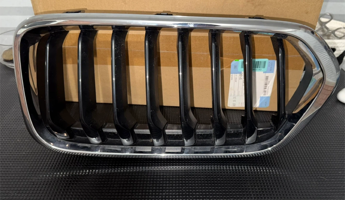 Brand-new, never installed genuine OEM BMW front kidney grilles.