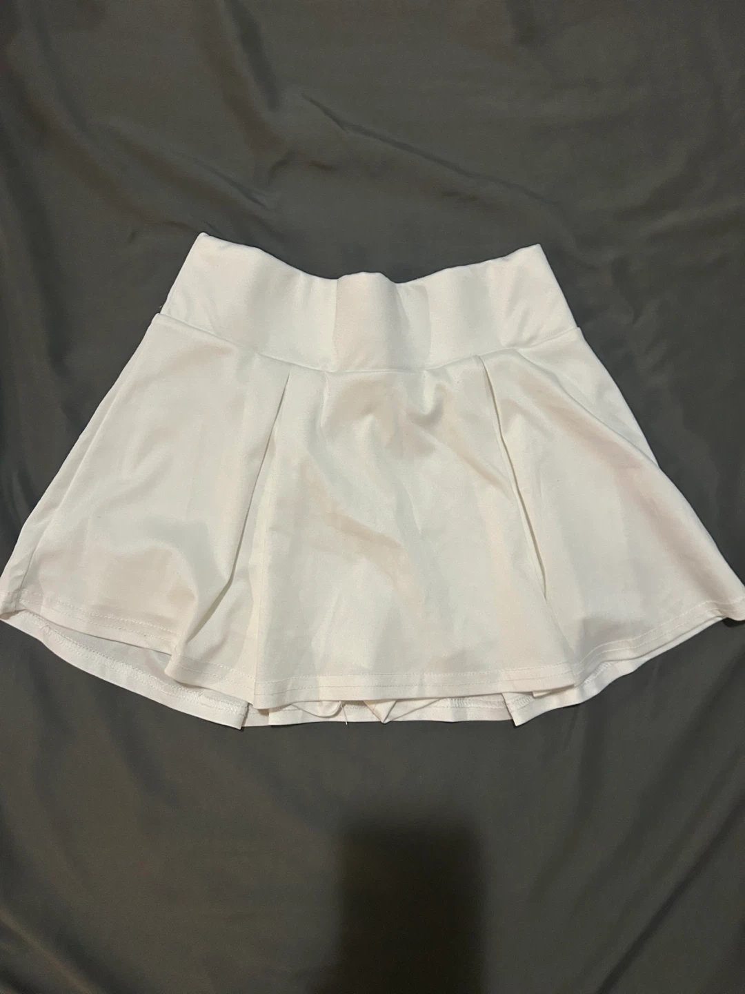 A cute lululemon white mini skirt with shorts inside, perfect for any occasion! It's in great condition and ready for a new home. It has a small stain inside but not visible from outside. The size is small and the material is comfortable and easy to wear. Don't miss out! Tag was cut out for comfortability when wearing.