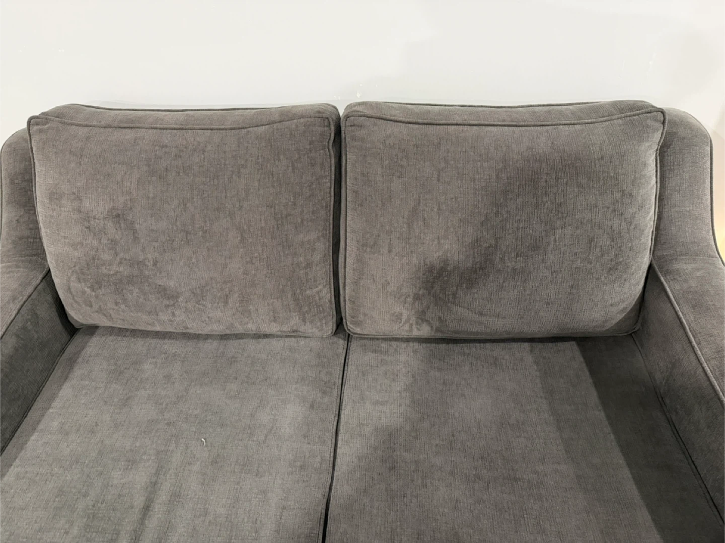 Selling a comfy grey loveseat. It's in great condition and perfect for a smaller space. The cushions are soft and supportive, making it a cozy spot to relax after a long day. It's a great addition to any living room!
