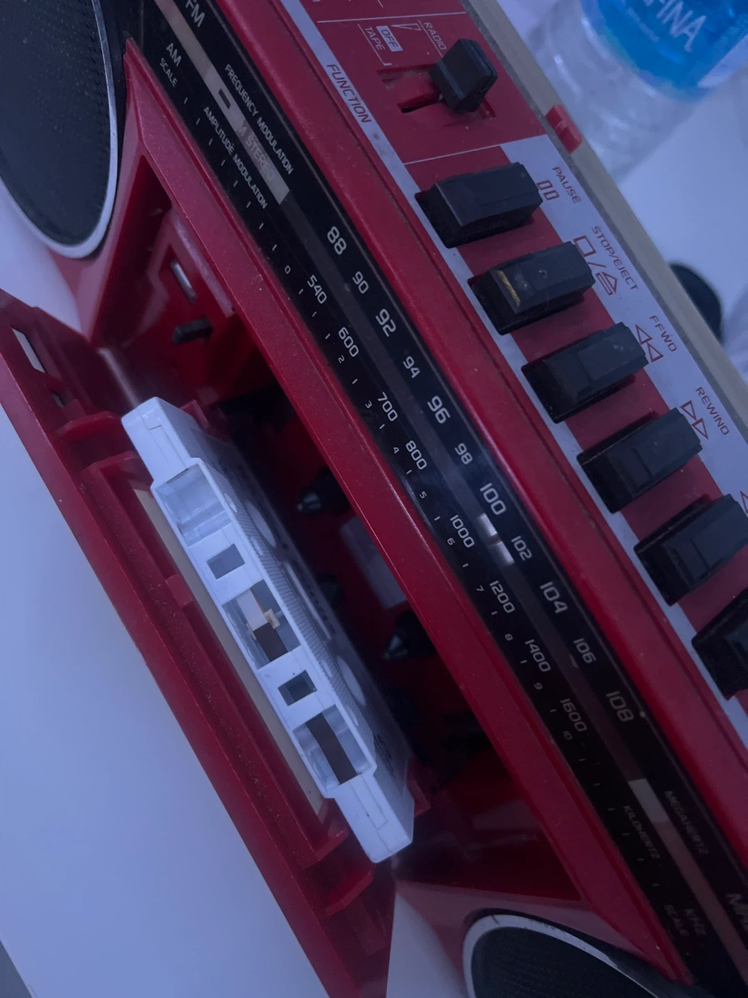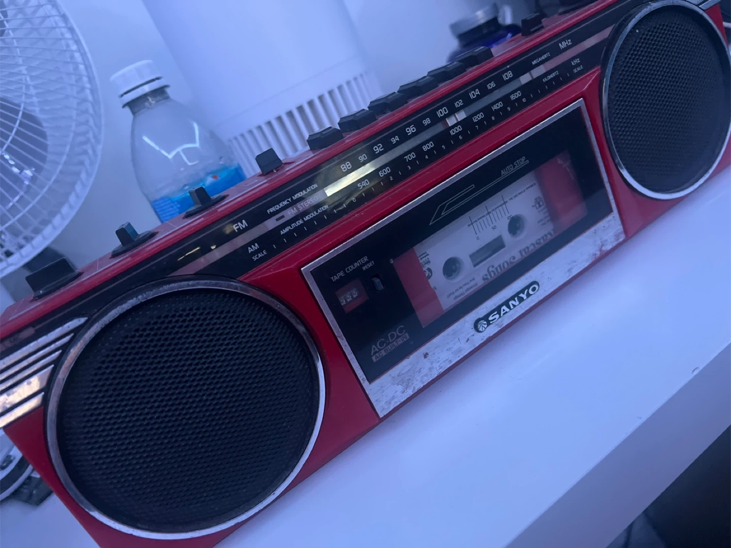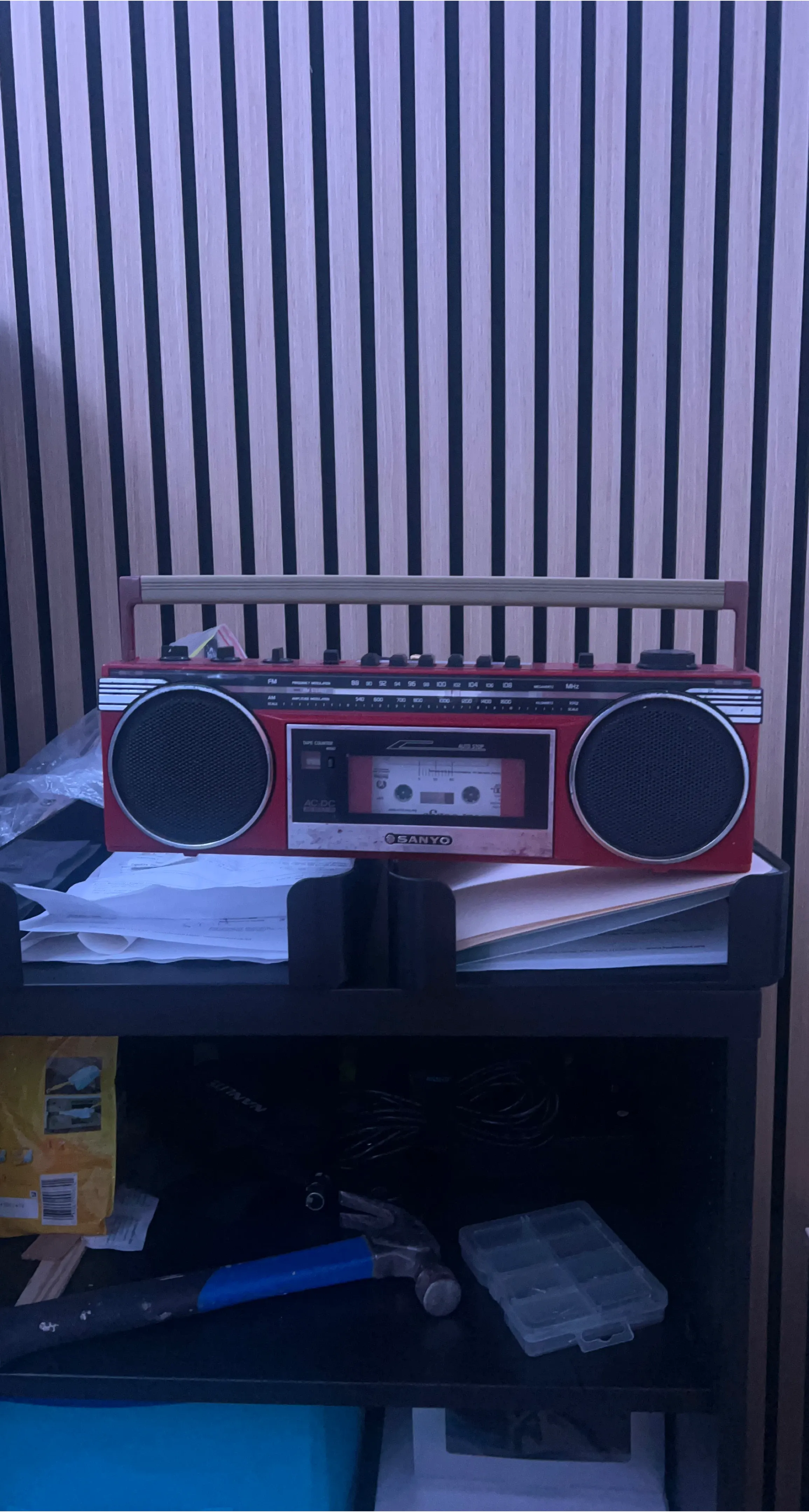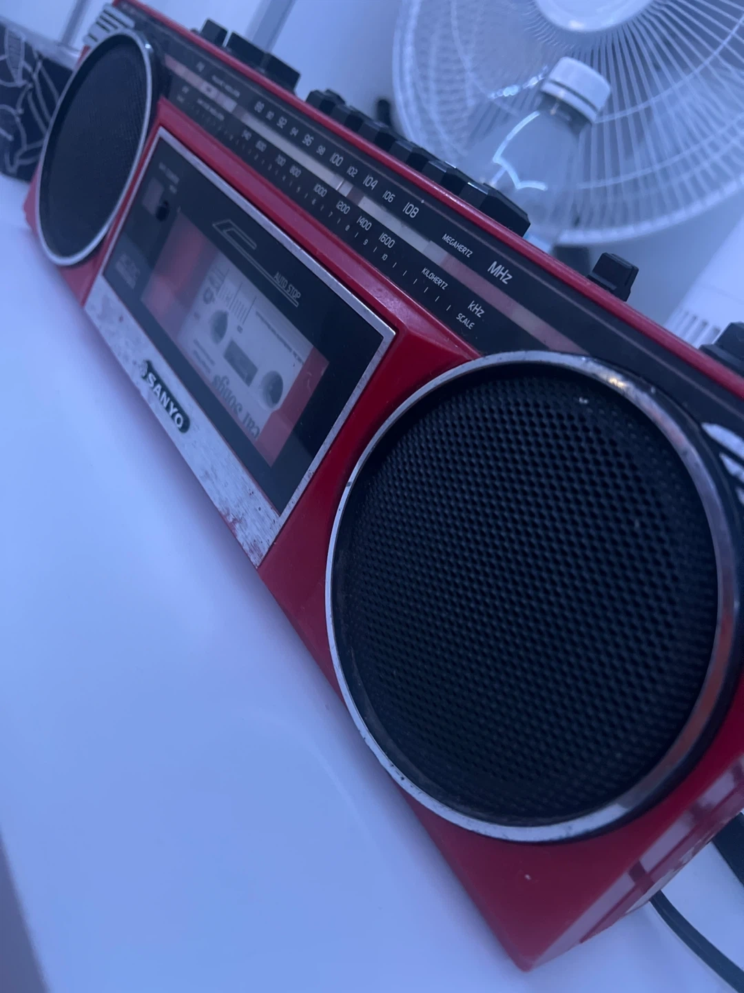 Selling a red Sanyo radio cassette recorder. It has some signs of wear, but it's still functional and ready for a new home! Perfect for anyone who loves vintage electronics or wants to enjoy their old cassettes