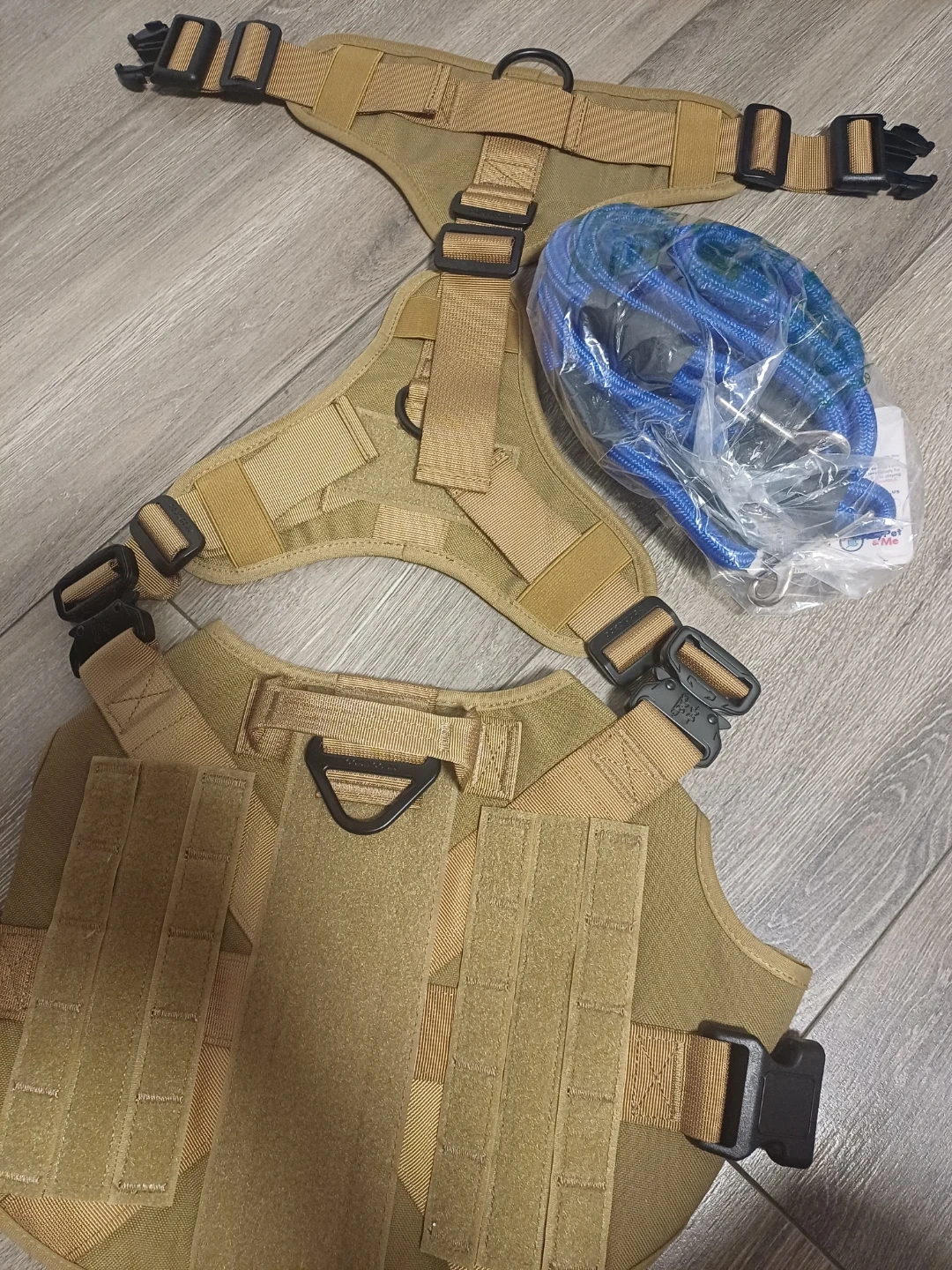 Selling a Brand new and never been used.... Tactical dog harness in size Large. It's in great condition and ready for a new home! It comes with 2 brand new leash as well for free Blue- Large