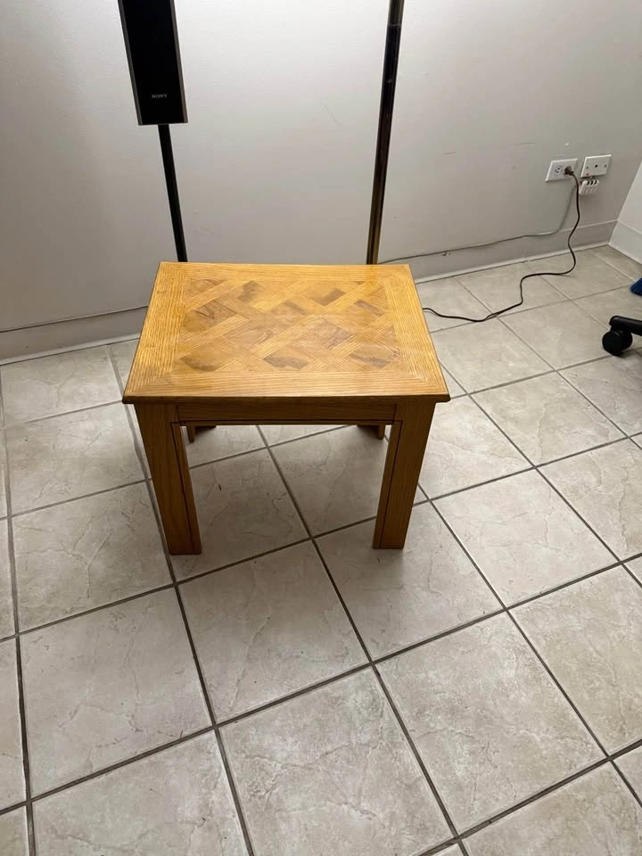 Vintage Oak Side Table with Parquetry Top