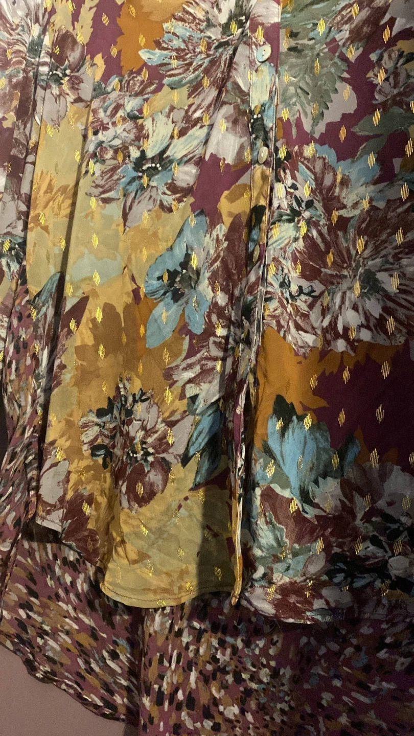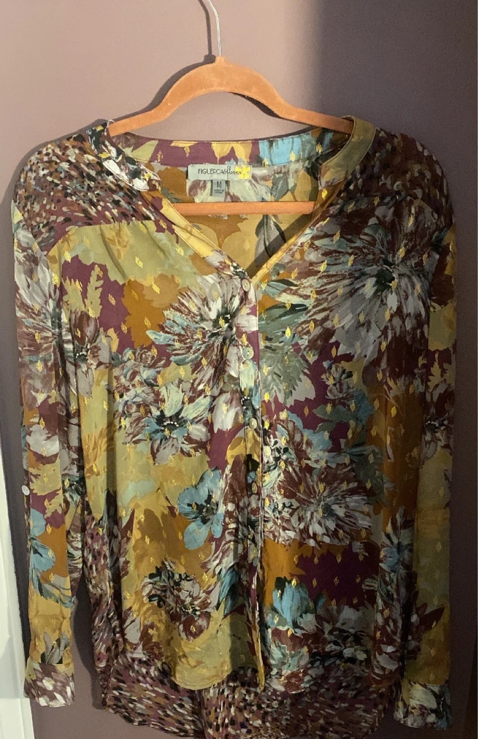 Women’s Floral Blouse Sheer W/ Gold accents | Size M [Fits larger| Brand: Figueroa & Eflower
