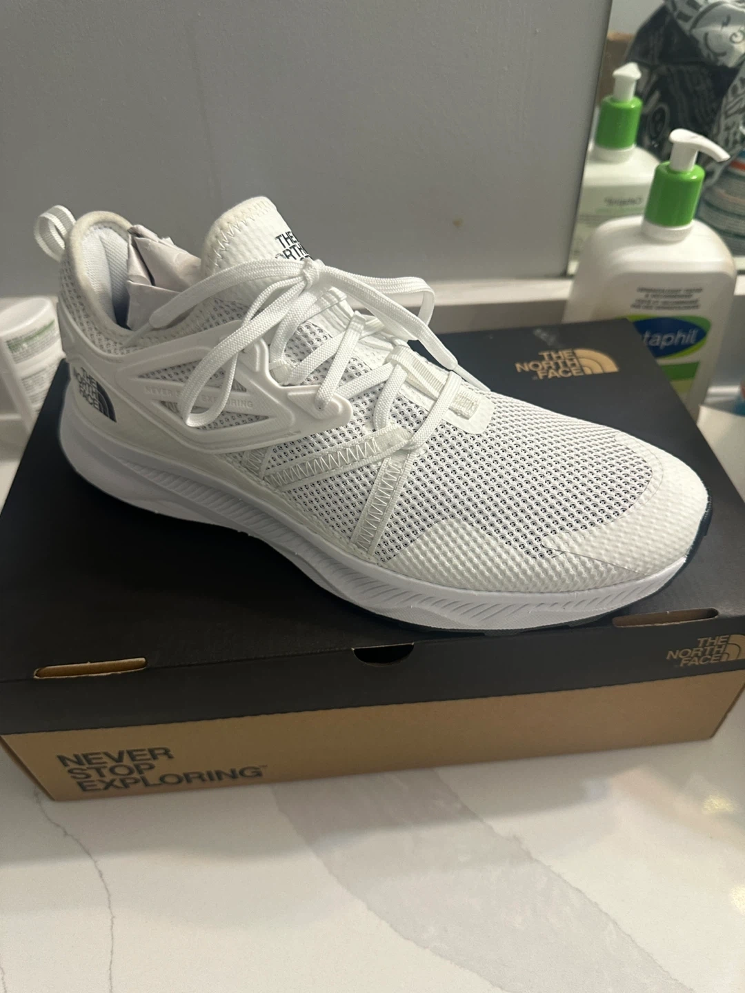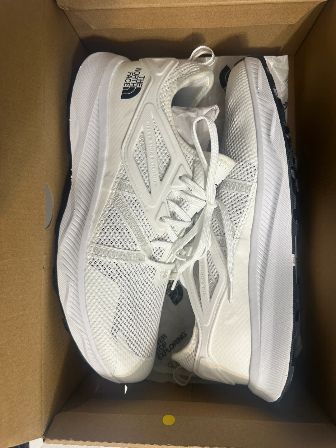 Selling a pair of The North Face M Oxeye sneakers in white, size 11. They come with the original box. These shoes are perfect for exploring! Originally bought for $169.99