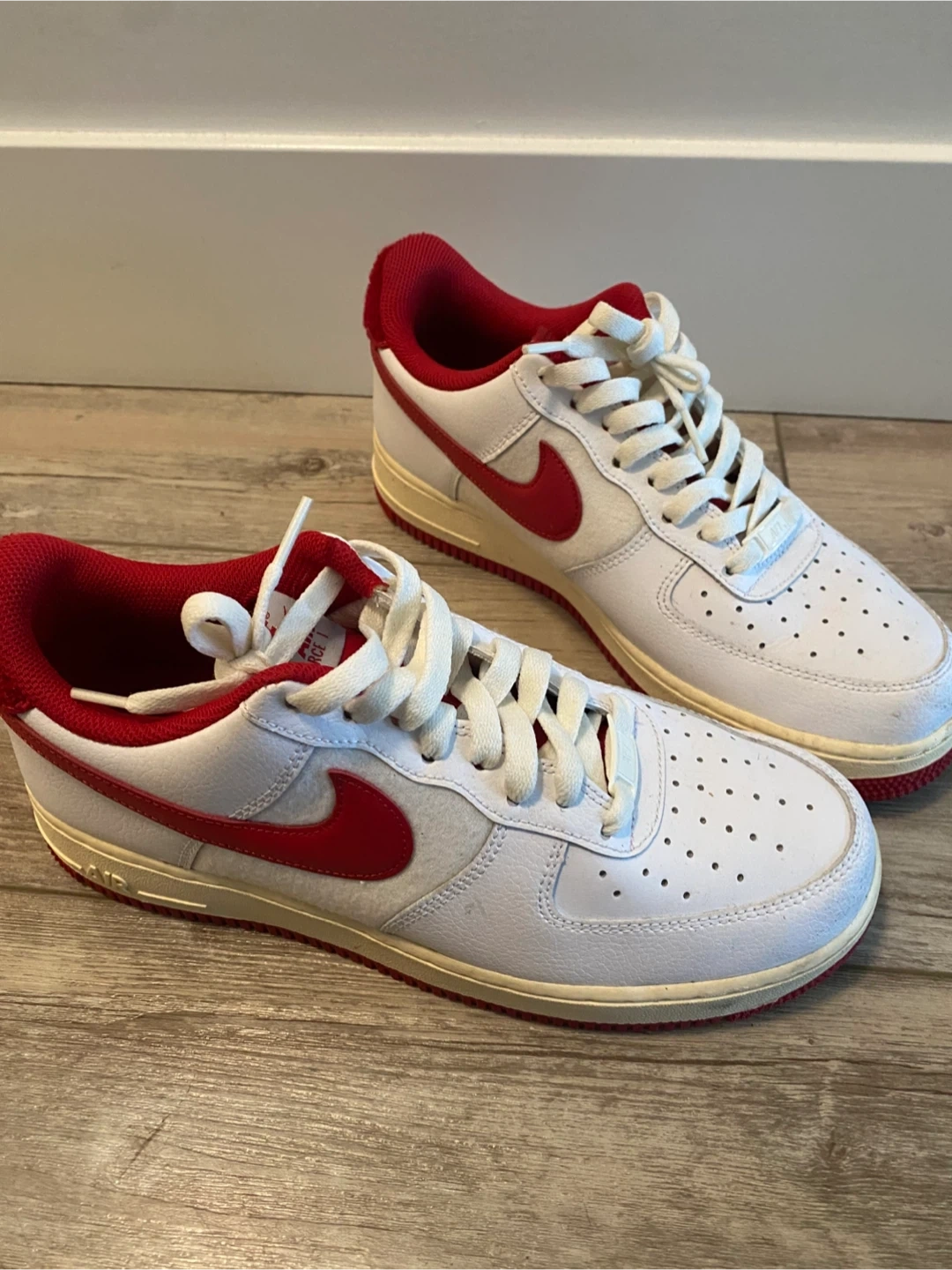 Buy & SellNike Air Force 1 White & Red SneakersNike Air Force 1 White & Red Sneakers$64Selling a pair of Nike Air Force 1 sneakers in white and red. They're in good condition and ready for a new home. Classic. Worn onceConditionLike newSize27cmBrandNikeWHERE TO MEETCheck LocationView MapSELLERverifiedPaulinaLower Lonsdale650 reviews0 chats·0 favorites·14 viewsSEND CHAT TO SELLERHi Paulina! I’m interested in your listing.Hi Paulina! I’m interested in your listing.Get the Karrot app to chatSign In to chat
