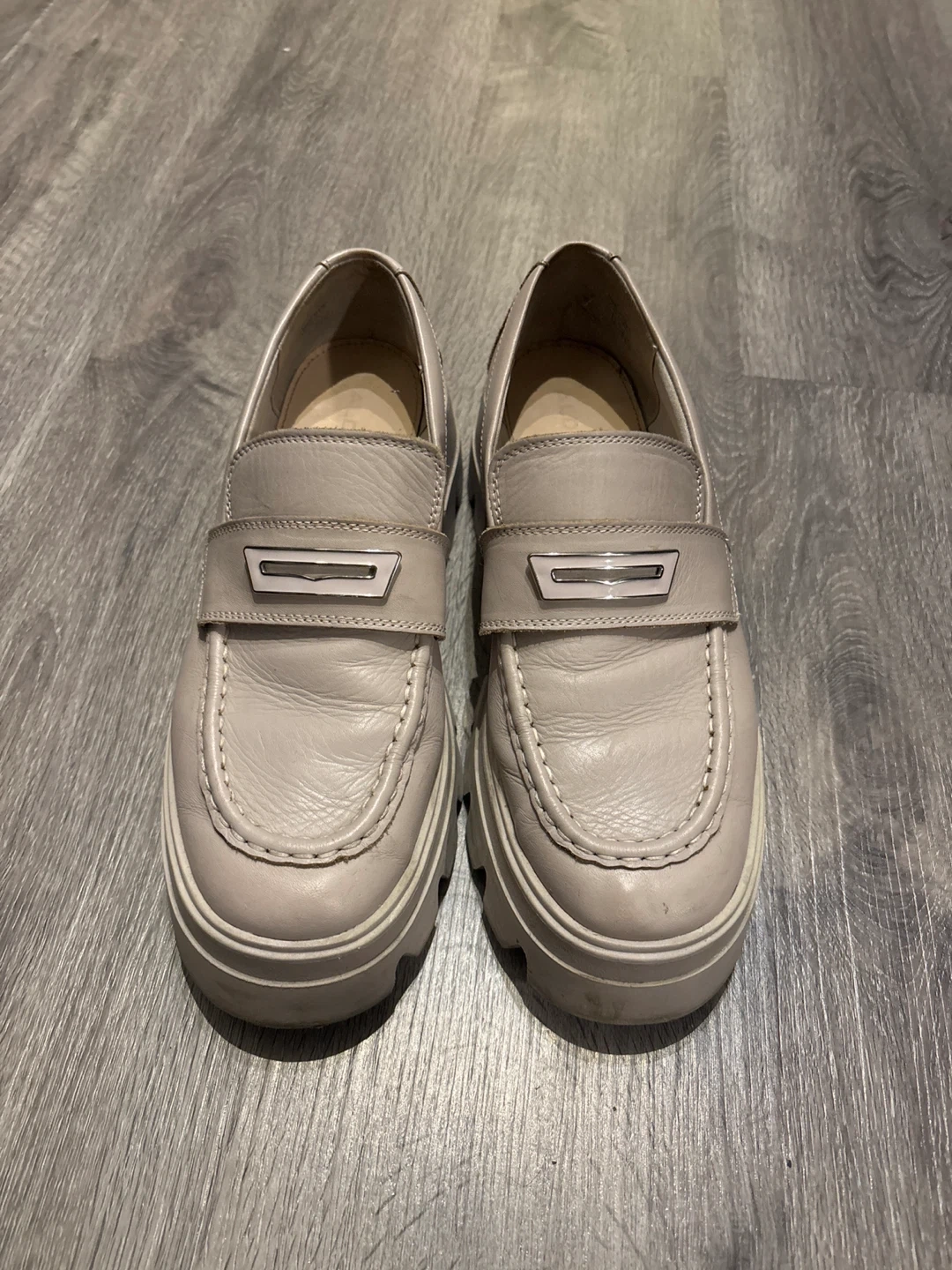 Selling a pair of leather loafers. They're in good condition and have a stylish, chunky sole. Perfect for adding a bit of edge to your outfit!