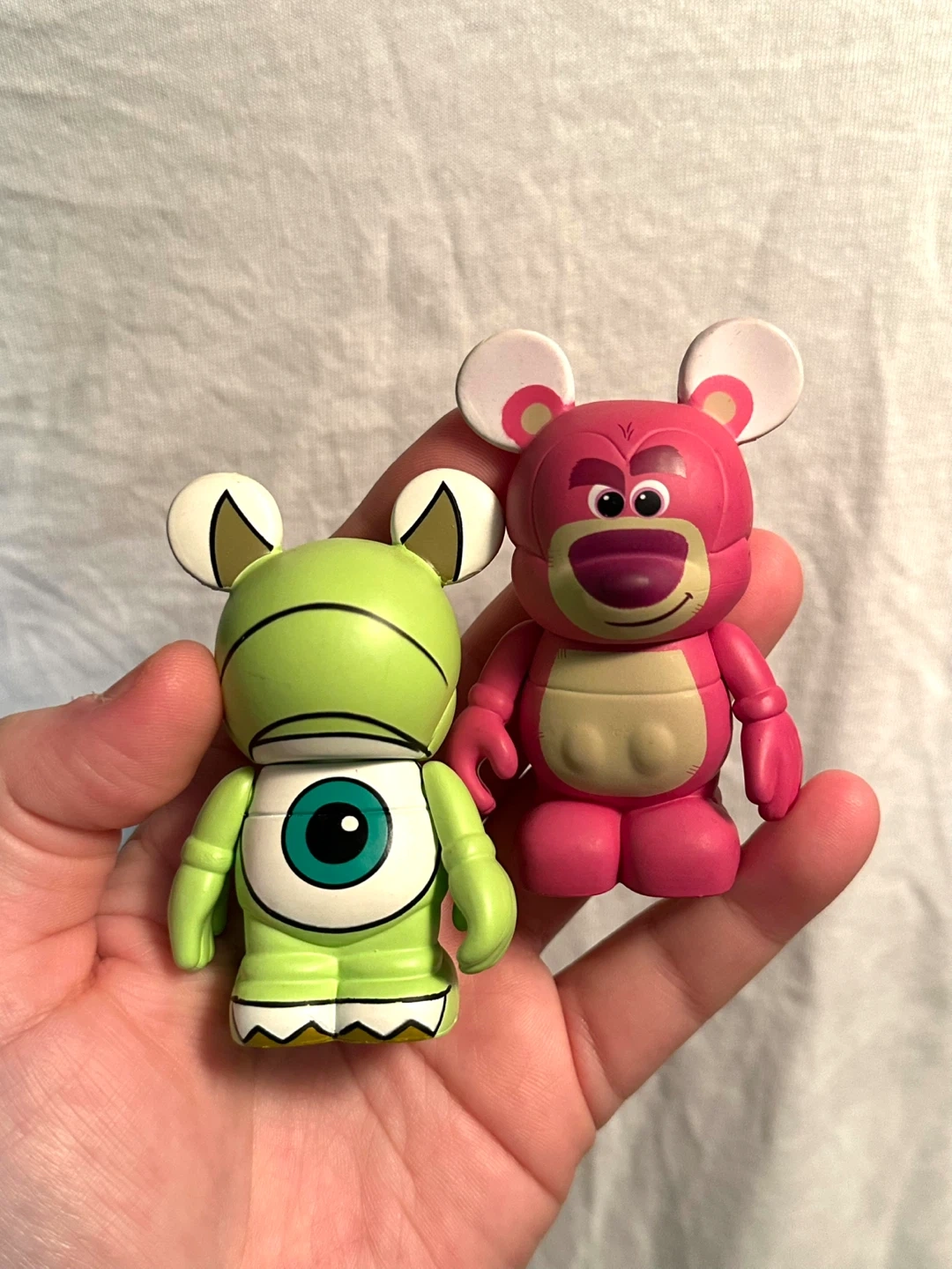 Selling a cute pair of Disney Vinylmation figures! You'll get Lotso from Toy Story 3 and Mike Wazowski from Monsters, Inc. These figures are in great shape and would be a fun addition to any Disney collection.
