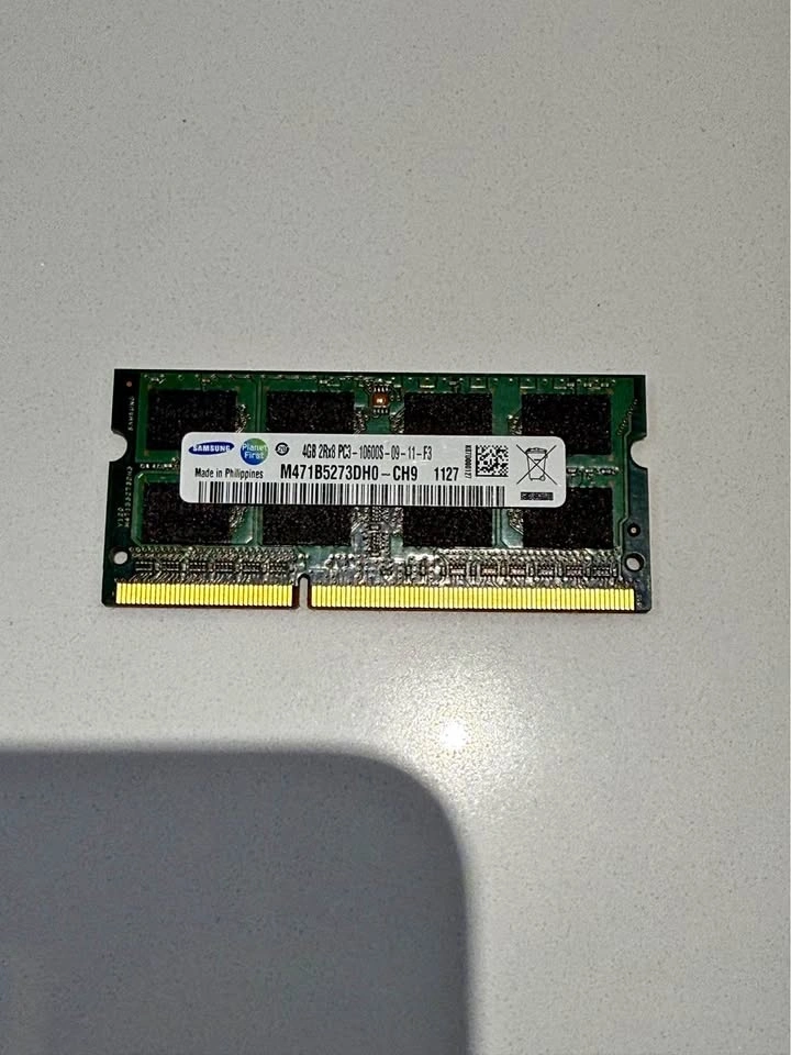 Buy & Sell4GB Single Laptop Memory4GB Single Laptop Memory$15Samsung 4GB 2Rx8 PC3-10600S DDR3 1333MHz SDRAM M471B5273DH0-CH9. Tested working. Pick up in Langley or arrange a meet up in Vancouver.WHERE TO MEETCheck LocationView MapSELLERYoungbaeWilloughby100 reviews0 chats·0 favorites·12 viewsSEND CHAT TO SELLERHi Youngbae! I’m interested in your listing.Hi Youngbae! I’m interested in your listing.Get the Karrot app to chatSign In to chat
