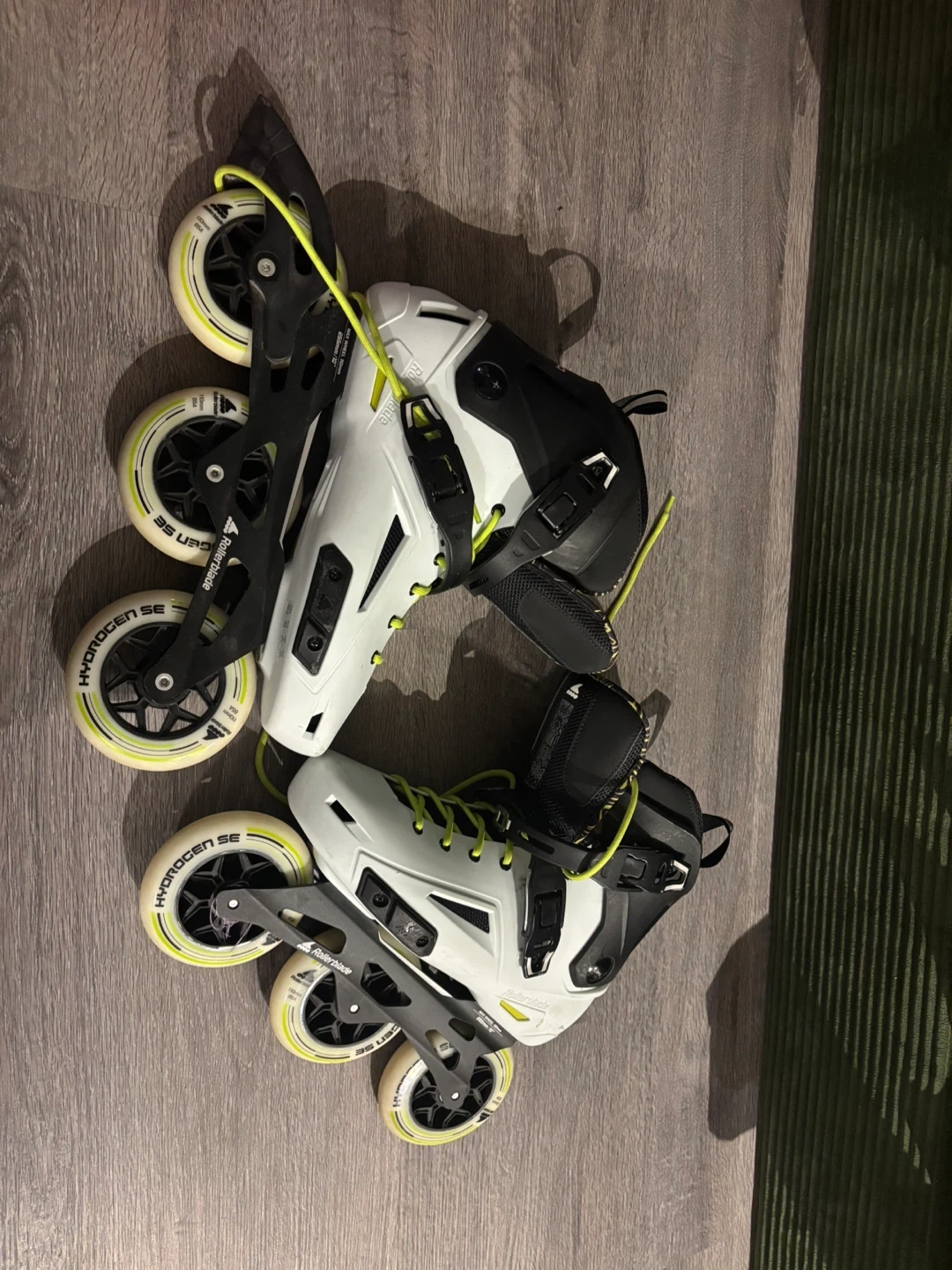 Selling a pair of Rollerblade inline skates in a stylish white and black design! These skates are perfect for recreational skating or fitness. They feature a comfortable fit and smooth rolling wheels for a great skating experience. Ready for a new home!