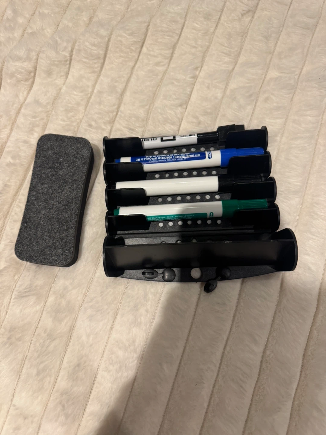 Selling a Quartet dry erase board! It comes with a set of dry erase markers and an eraser. Perfect for keeping track of your schedule or jotting down notes